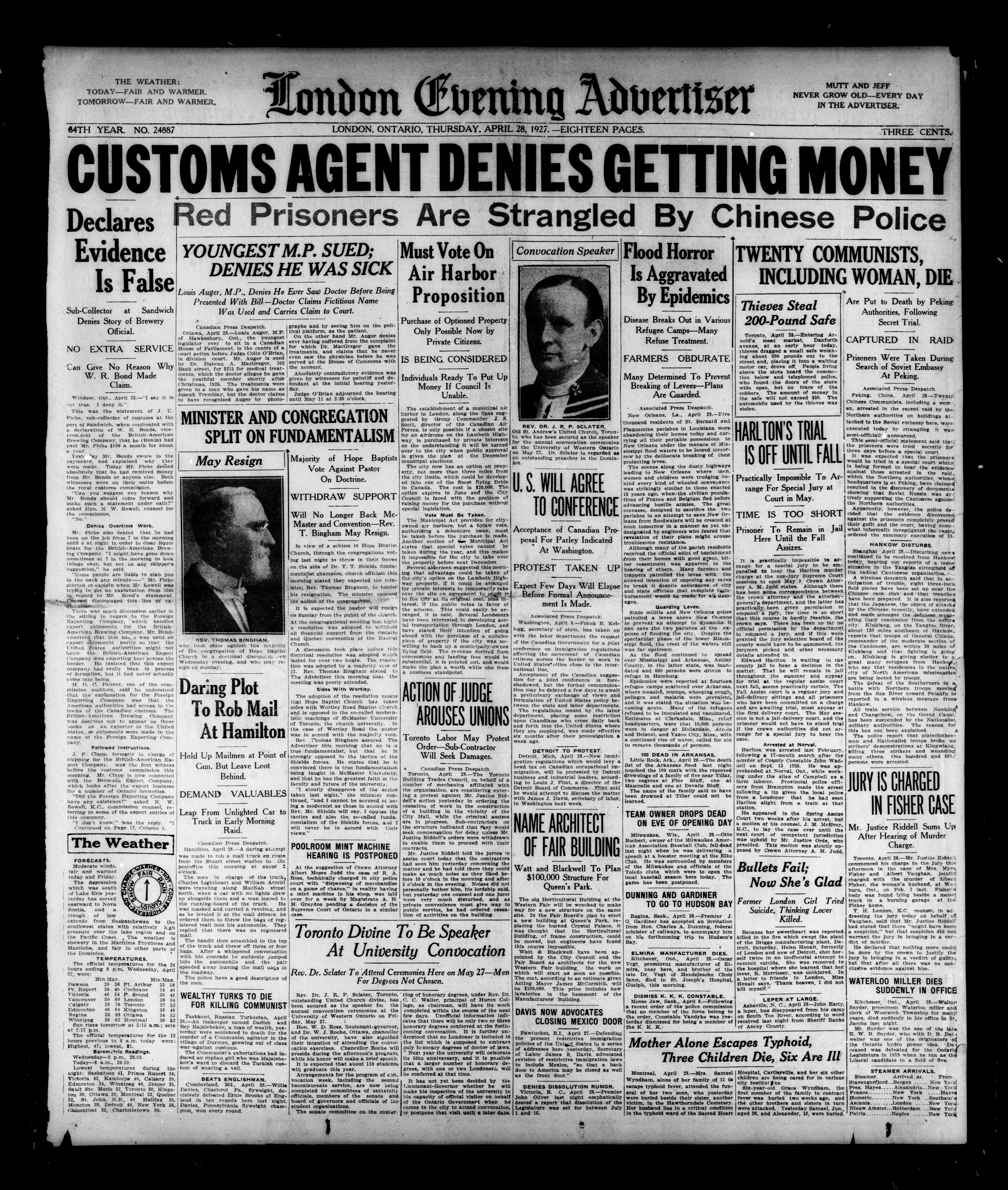 London, Ontario : London Advertiser Company, Limited, [1927]; 18 images, 0 avec recherche en texte intégral