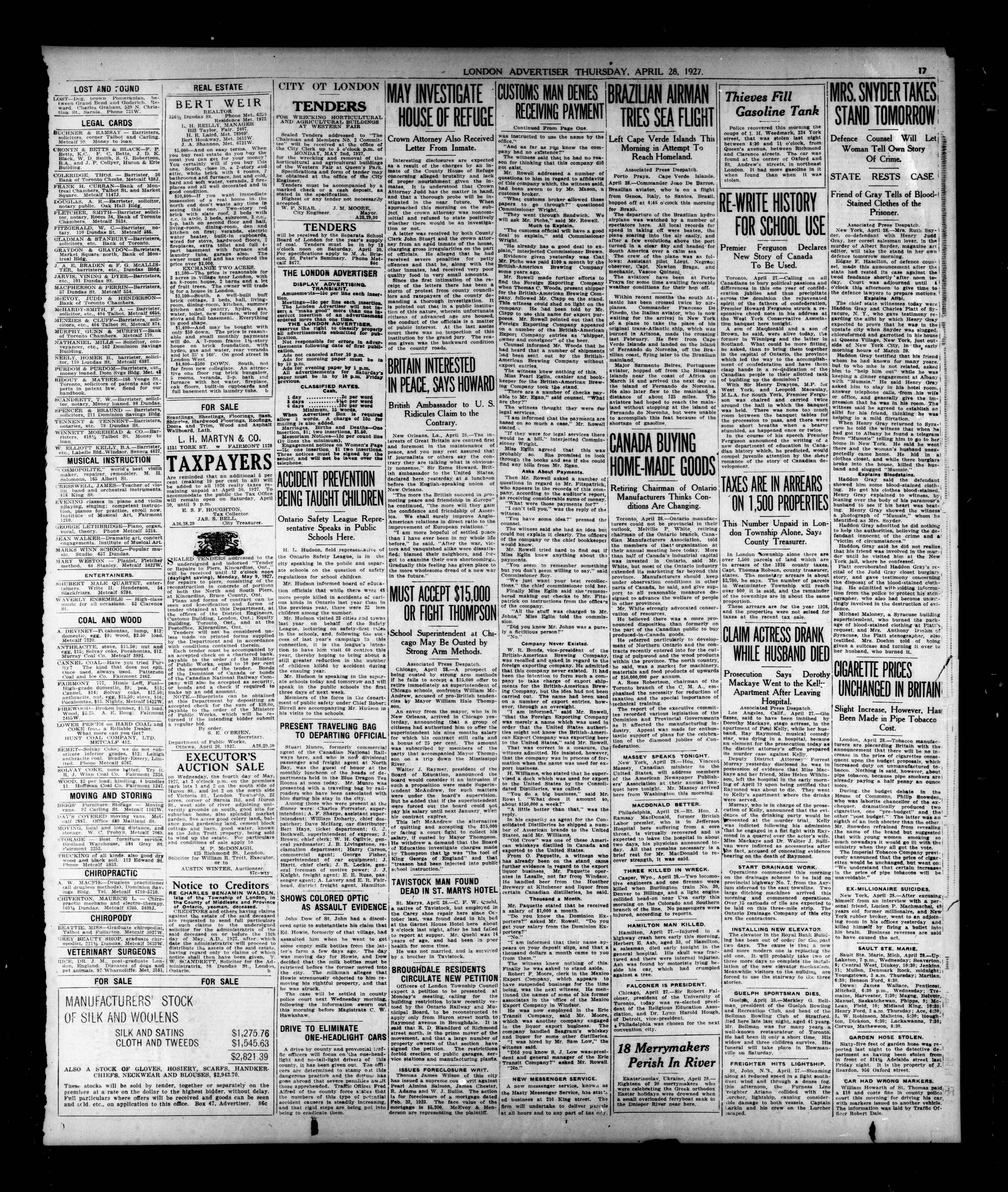 London, Ontario : London Advertiser Company, Limited, [1927]; 18 images, 0 avec recherche en texte intégral
