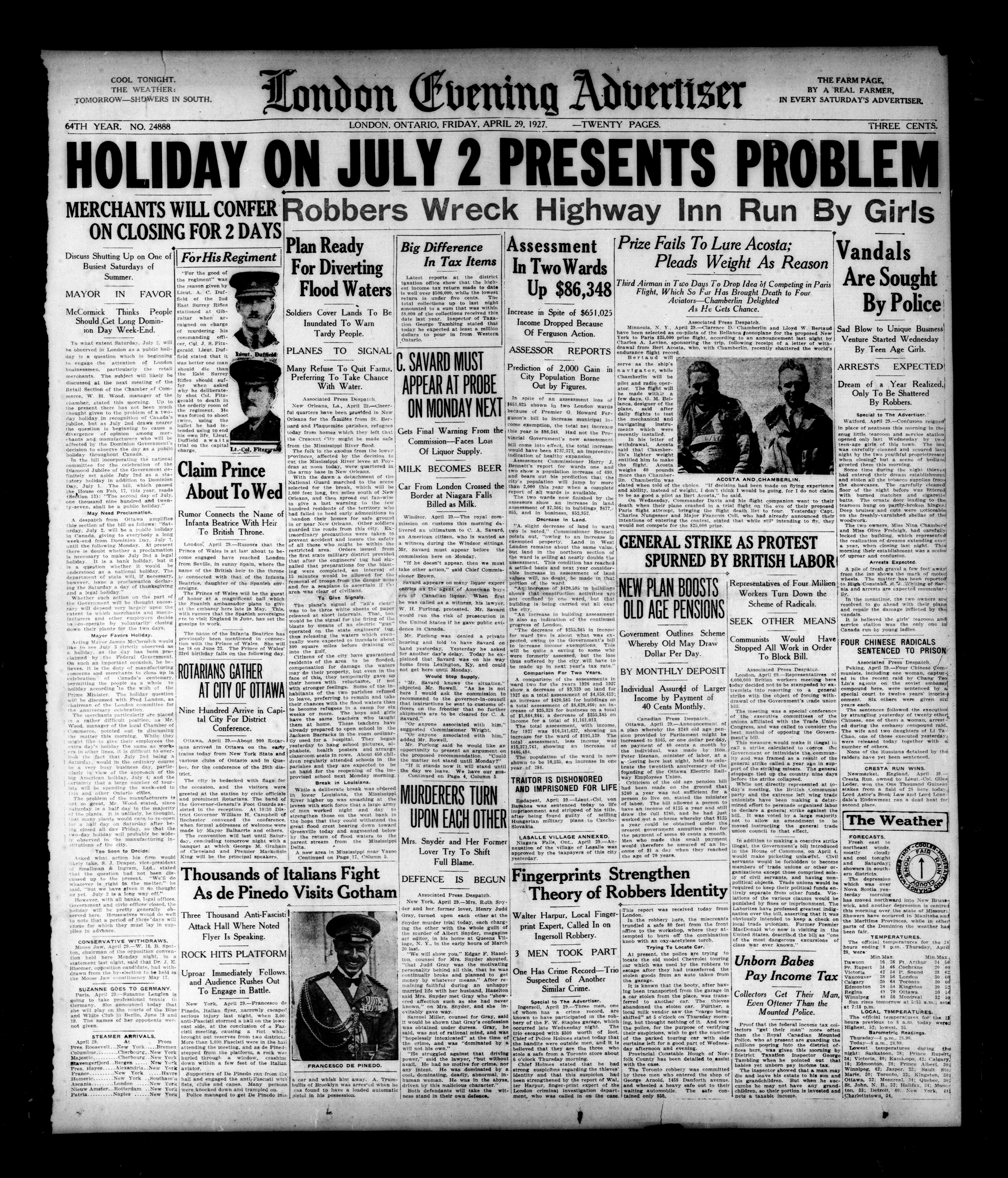 London, Ontario : London Advertiser Company, Limited, [1927]; 20 images, 0 avec recherche en texte intégral