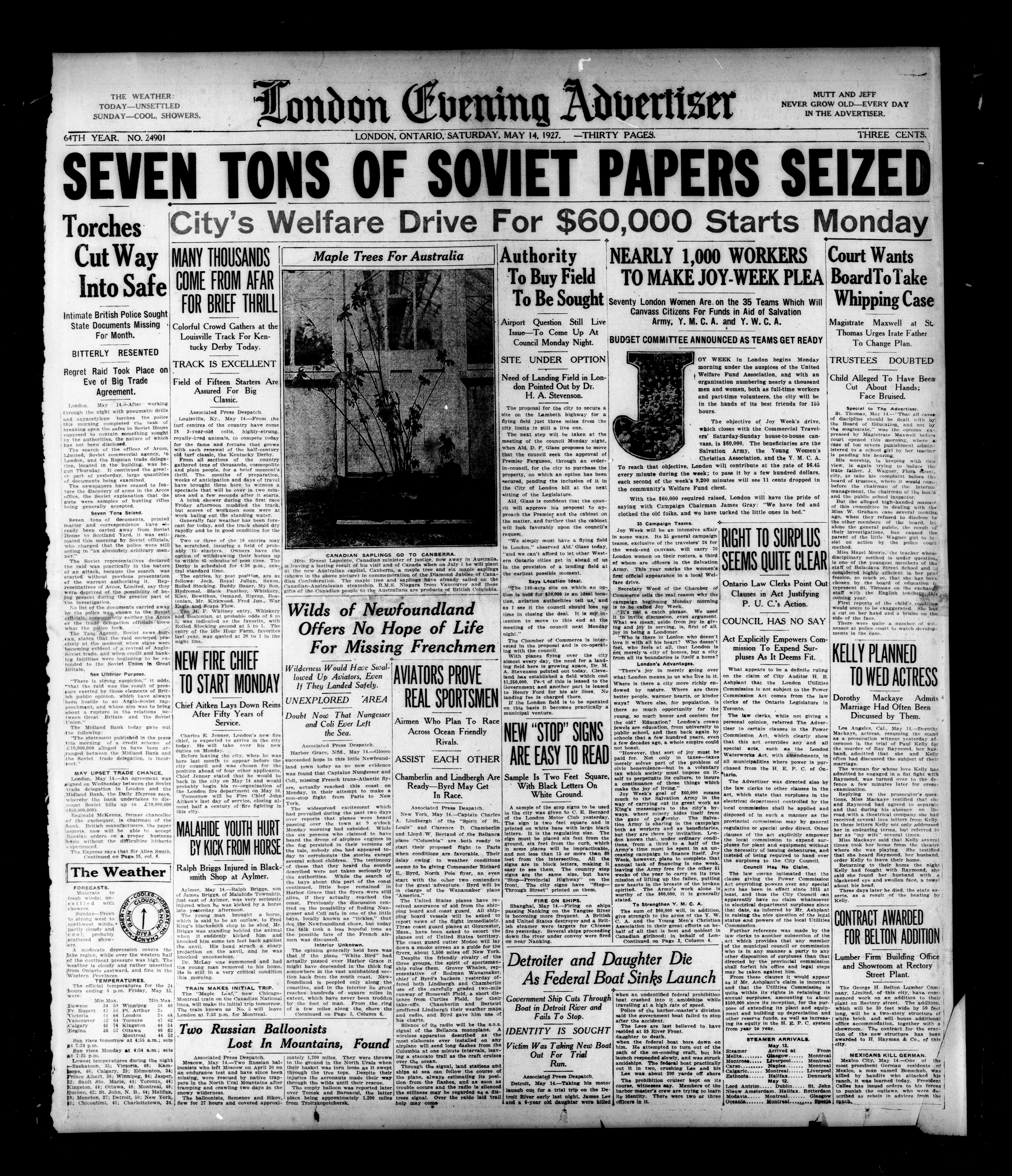 London Evening Advertiser. : London evening advertiser : 64th Year, No. 24901 (May 14, 1927)