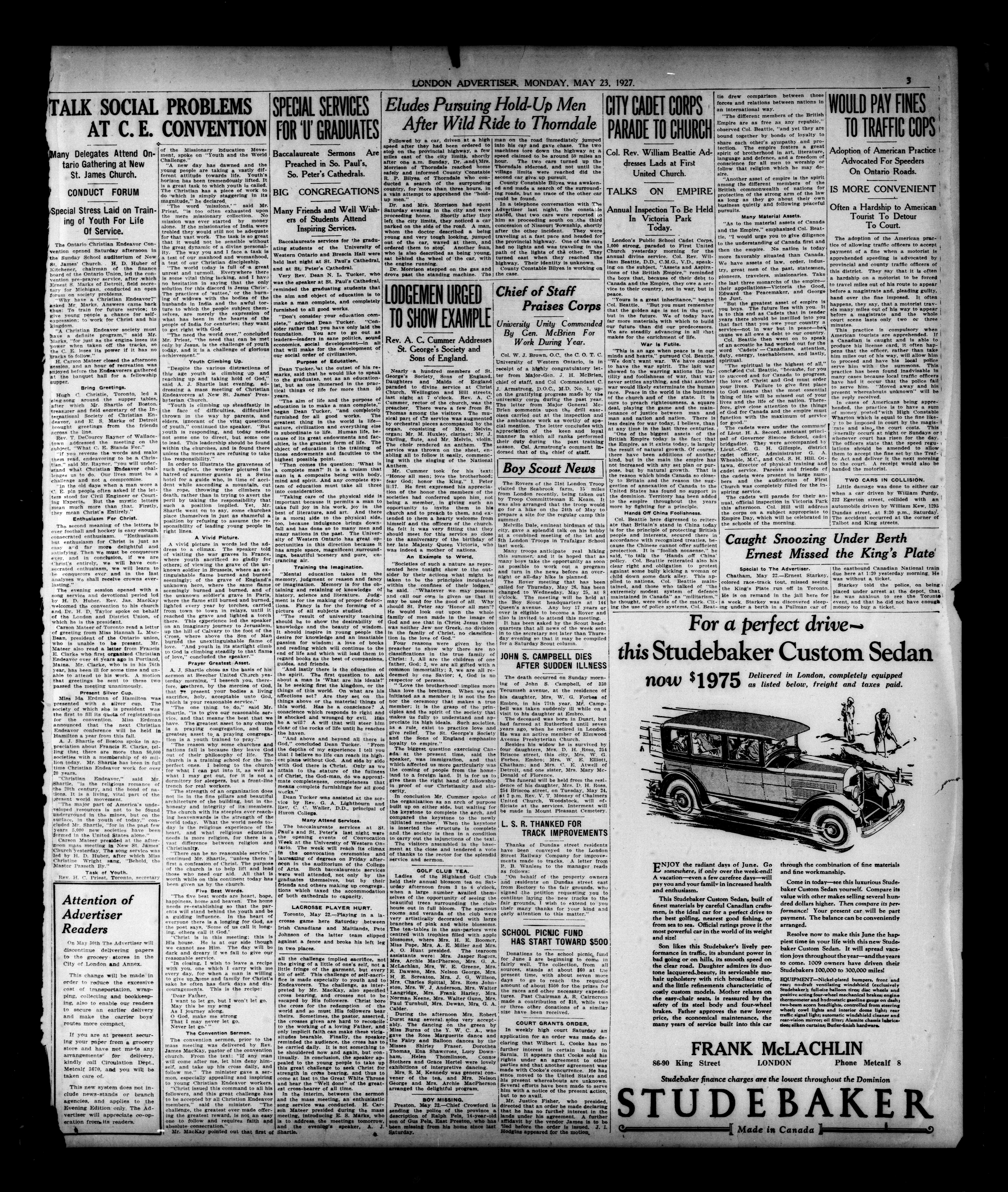 London, Ontario : London Advertiser Company, Limited, [1927]; 14 images, 0 avec recherche en texte intégral