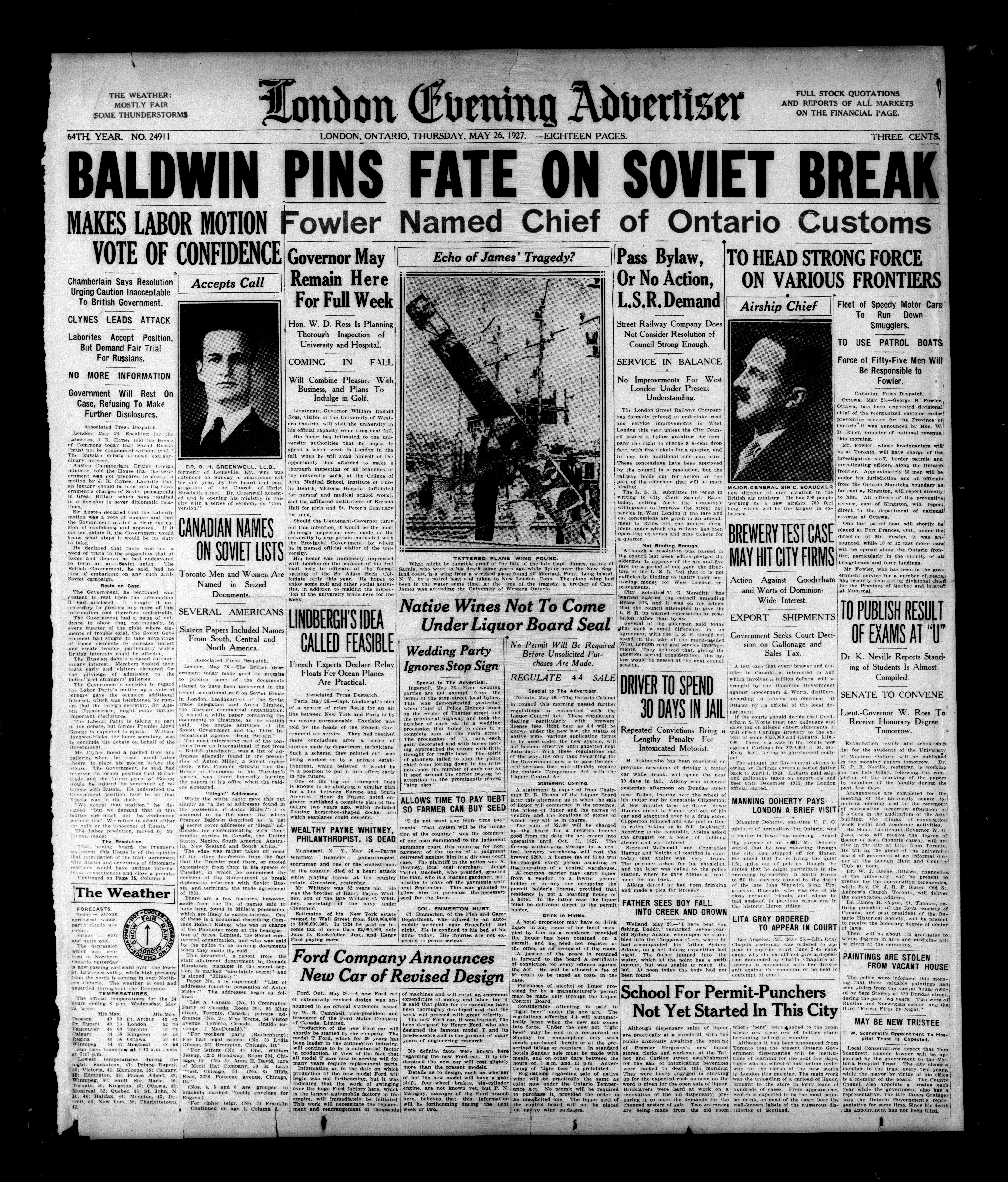 London, Ontario : London Advertiser Company, Limited, [1927]; 18 images, 0 avec recherche en texte intégral