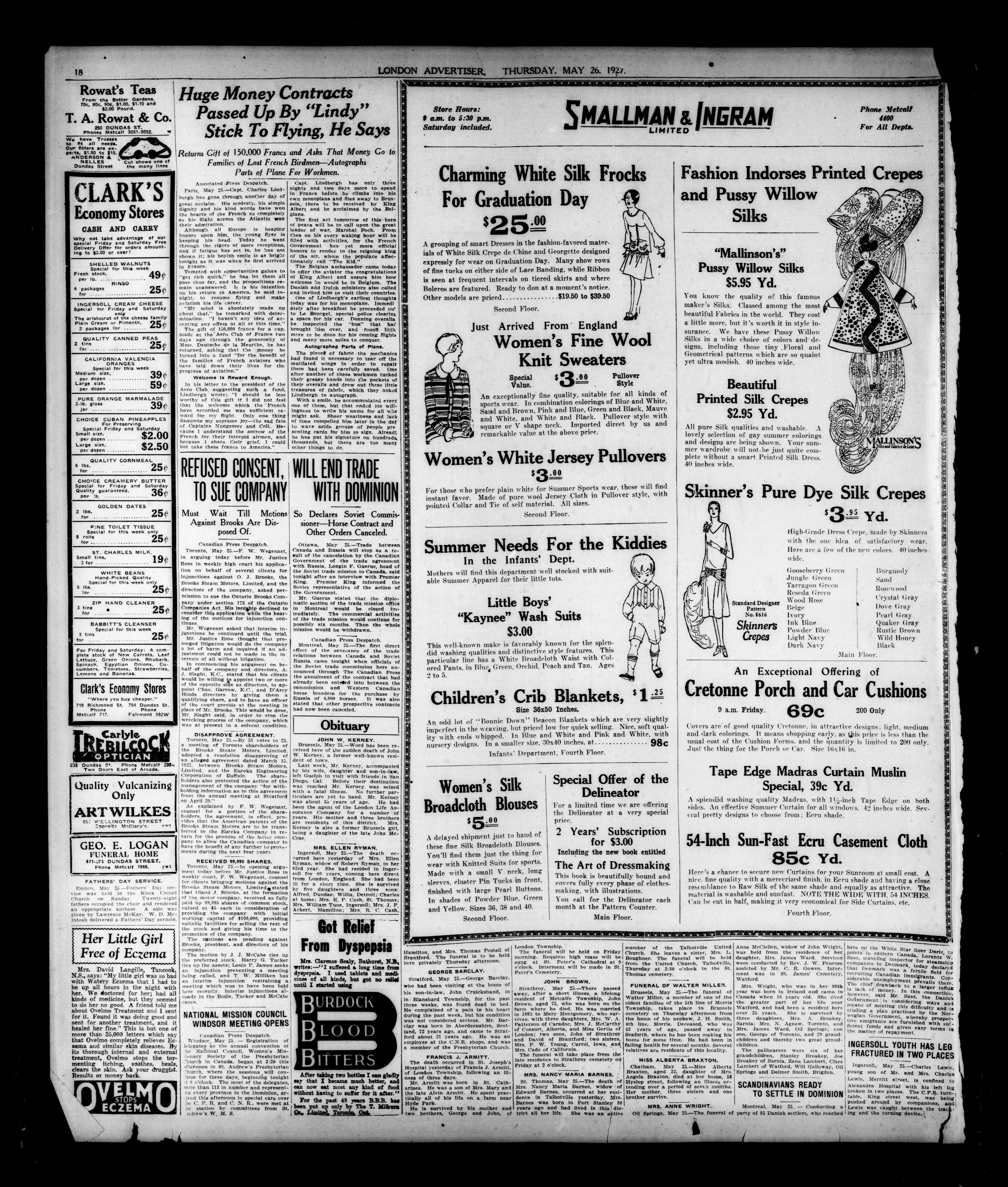 London, Ontario : London Advertiser Company, Limited, [1927]; 18 images, 0 avec recherche en texte intégral