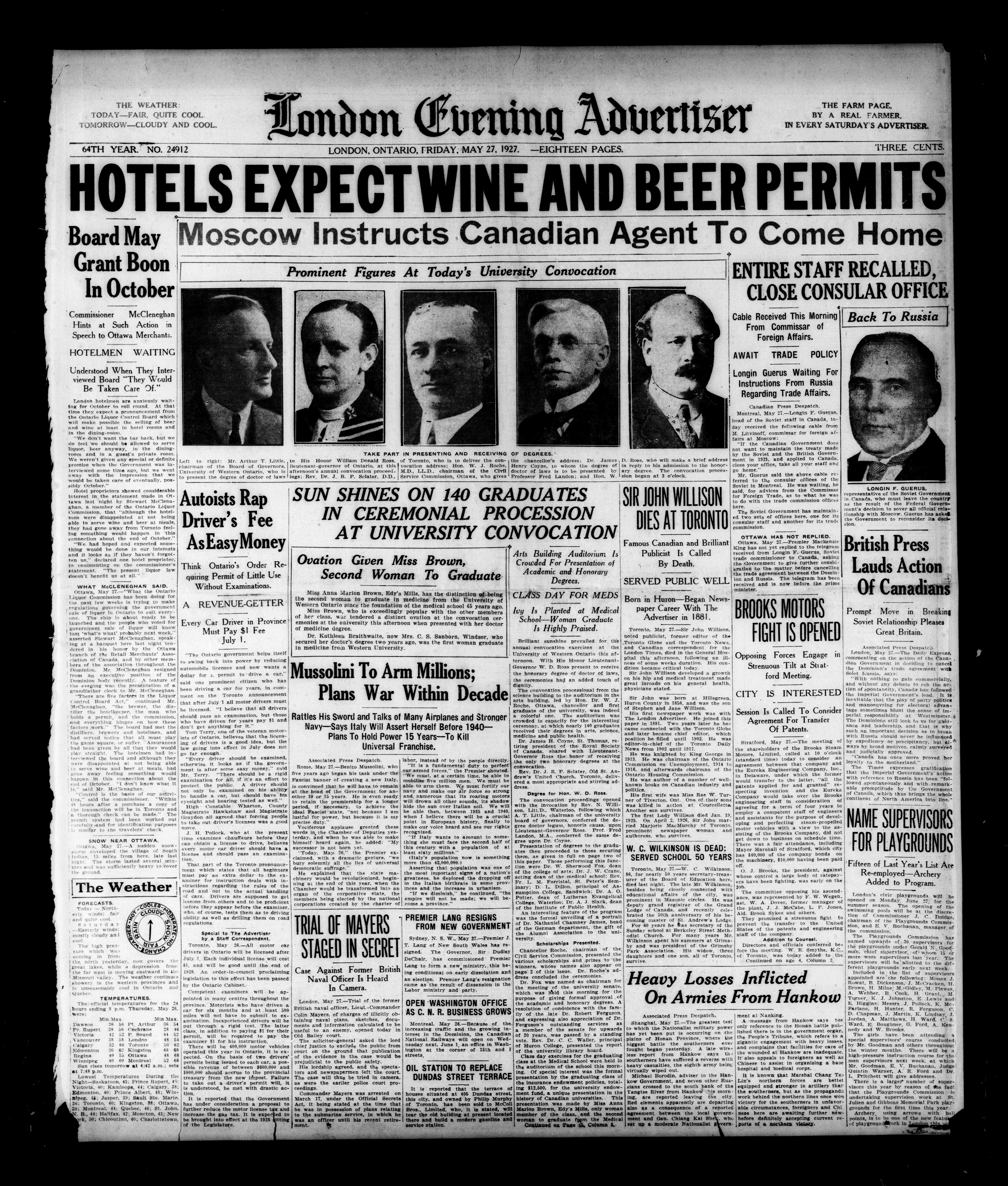 London, Ontario : London Advertiser Company, Limited, [1927]; 18 images, 0 avec recherche en texte intégral