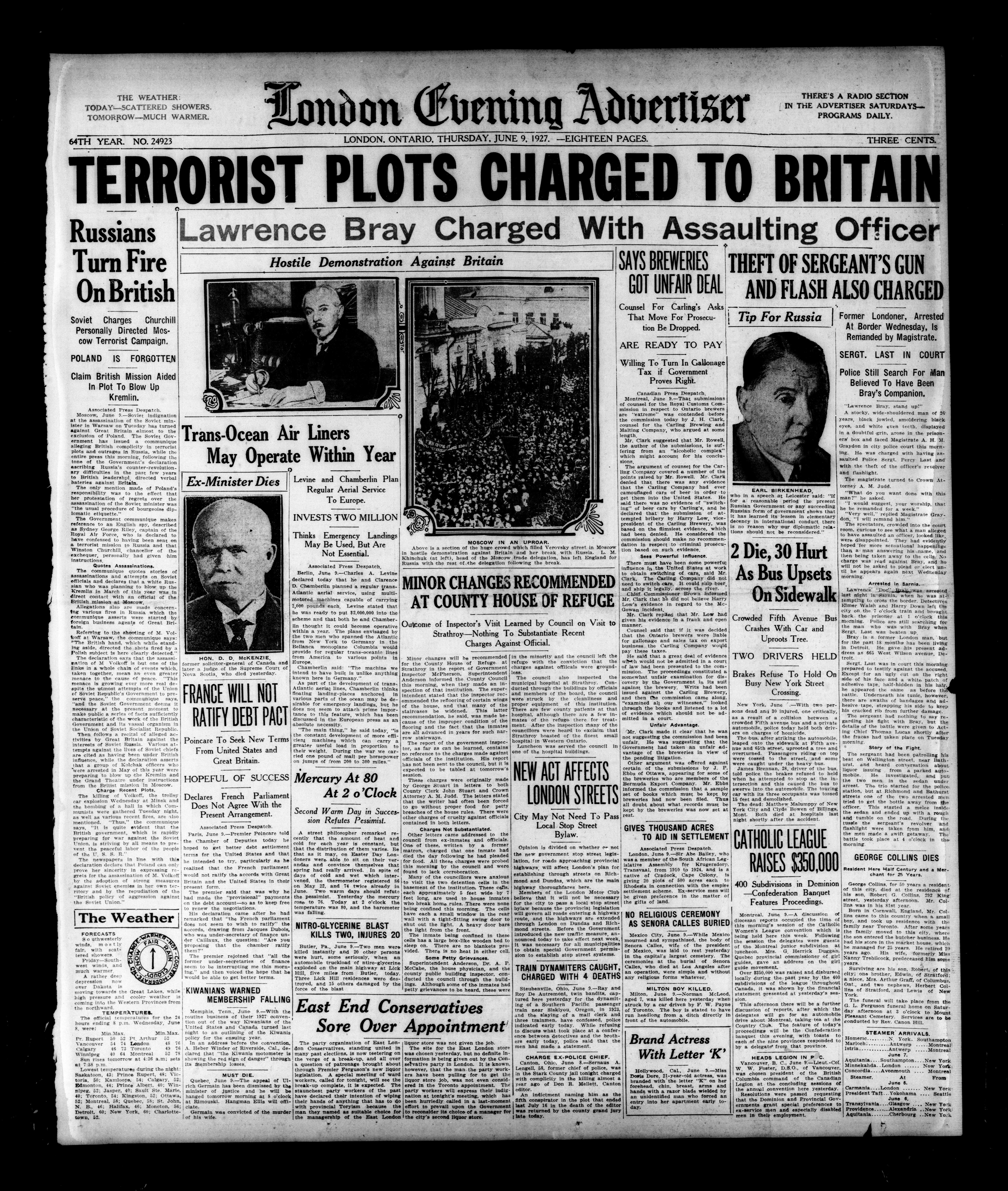 London Evening Advertiser. : London evening advertiser : 64th Year, No. 24923 (June 9, 1927)