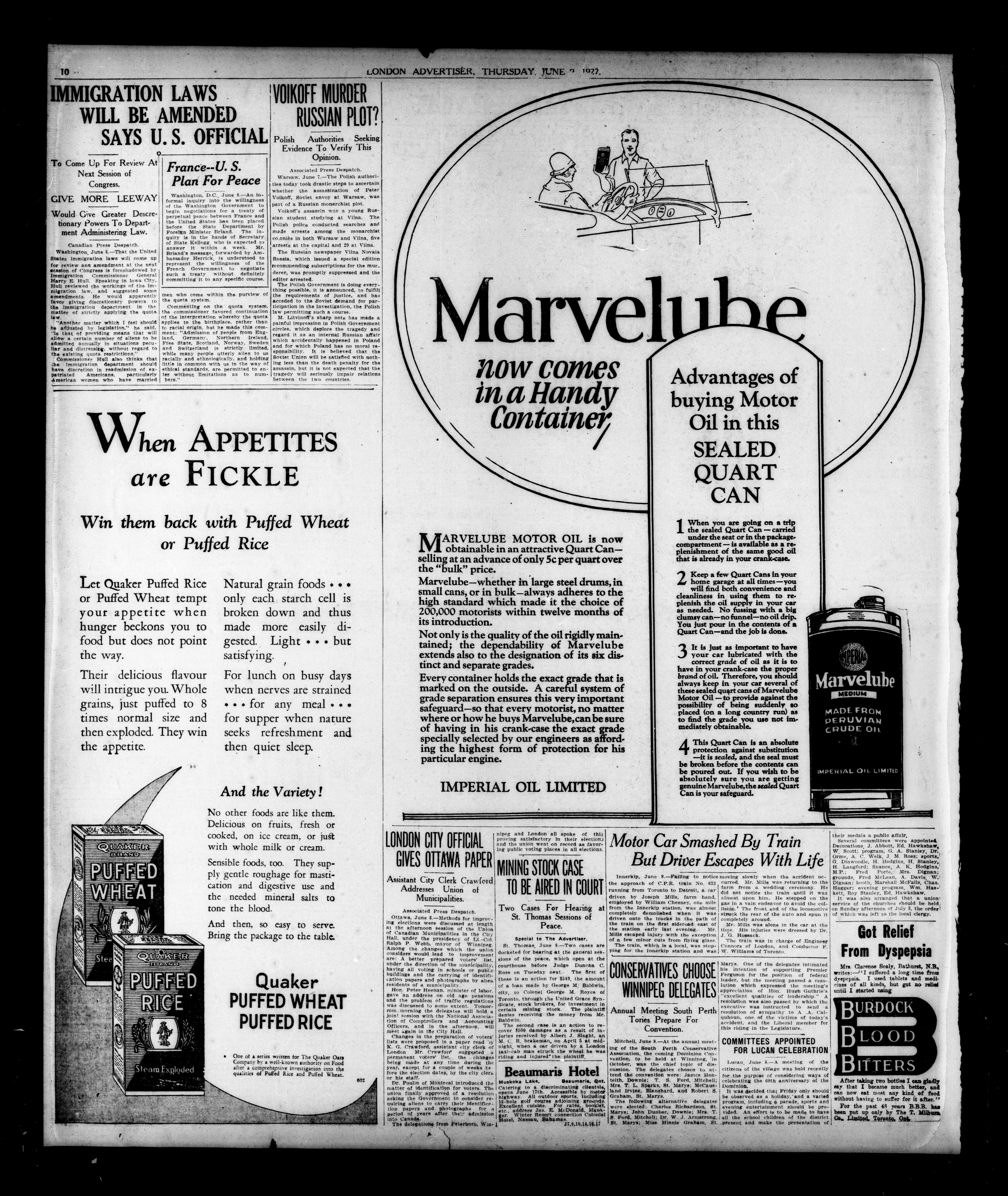 London, Ontario : London Advertiser Company, Limited, [1927]; 18 images, 0 avec recherche en texte intégral