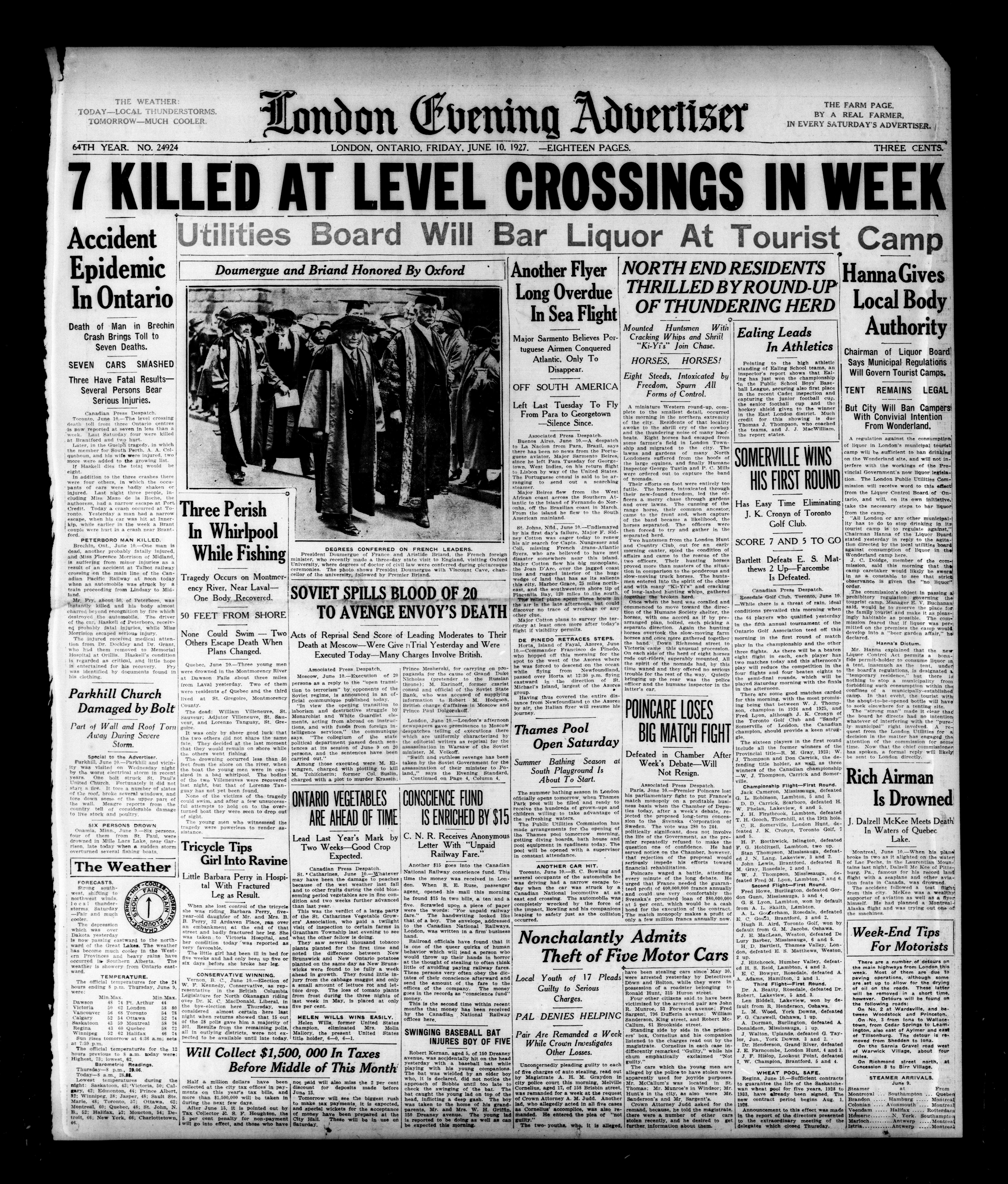 London Evening Advertiser. : London evening advertiser : 64th Year, No. 24924 (June 10, 1927)