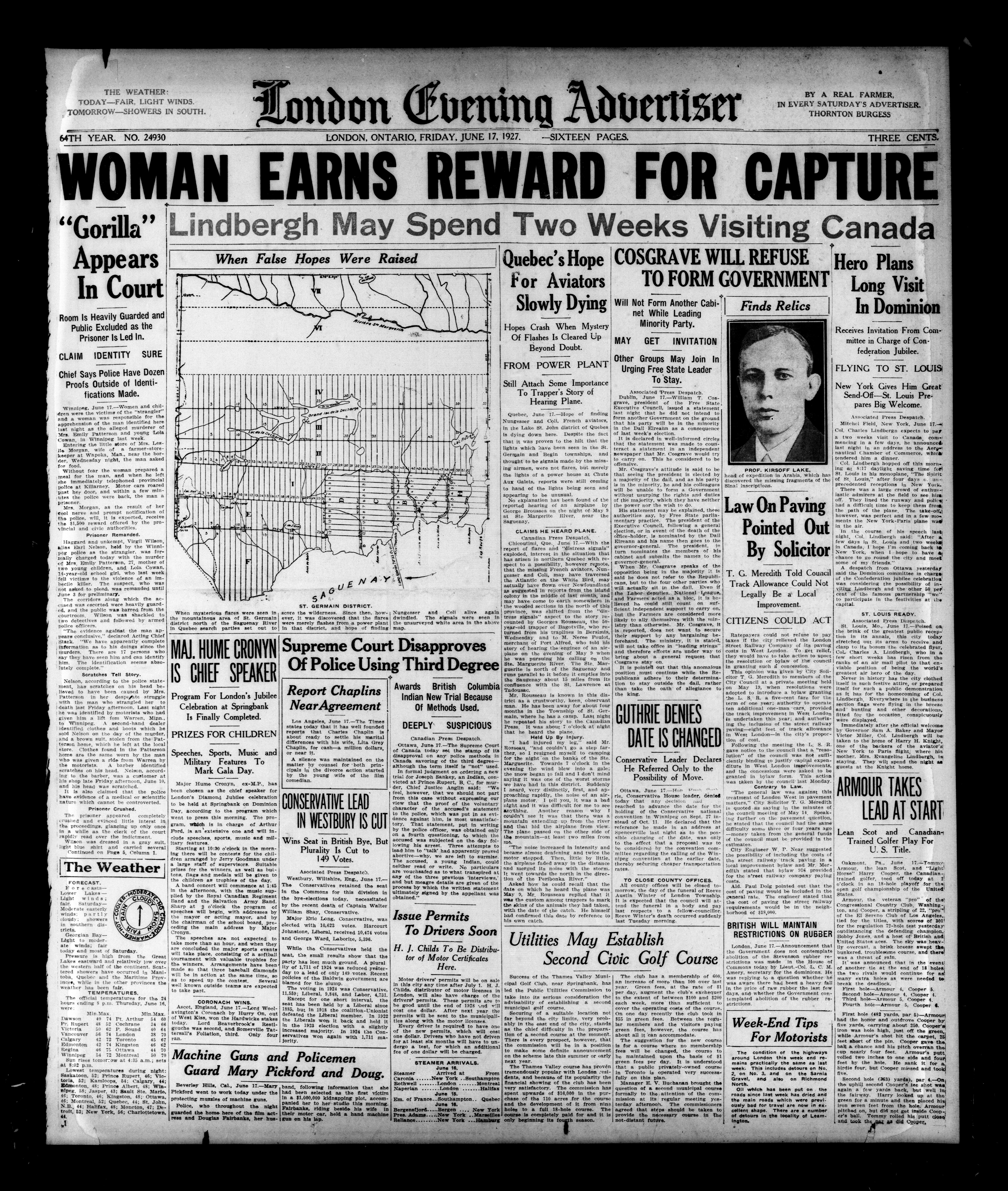 London, Ontario : London Advertiser Company, Limited, [1927]; 16 images, 0 avec recherche en texte intégral
