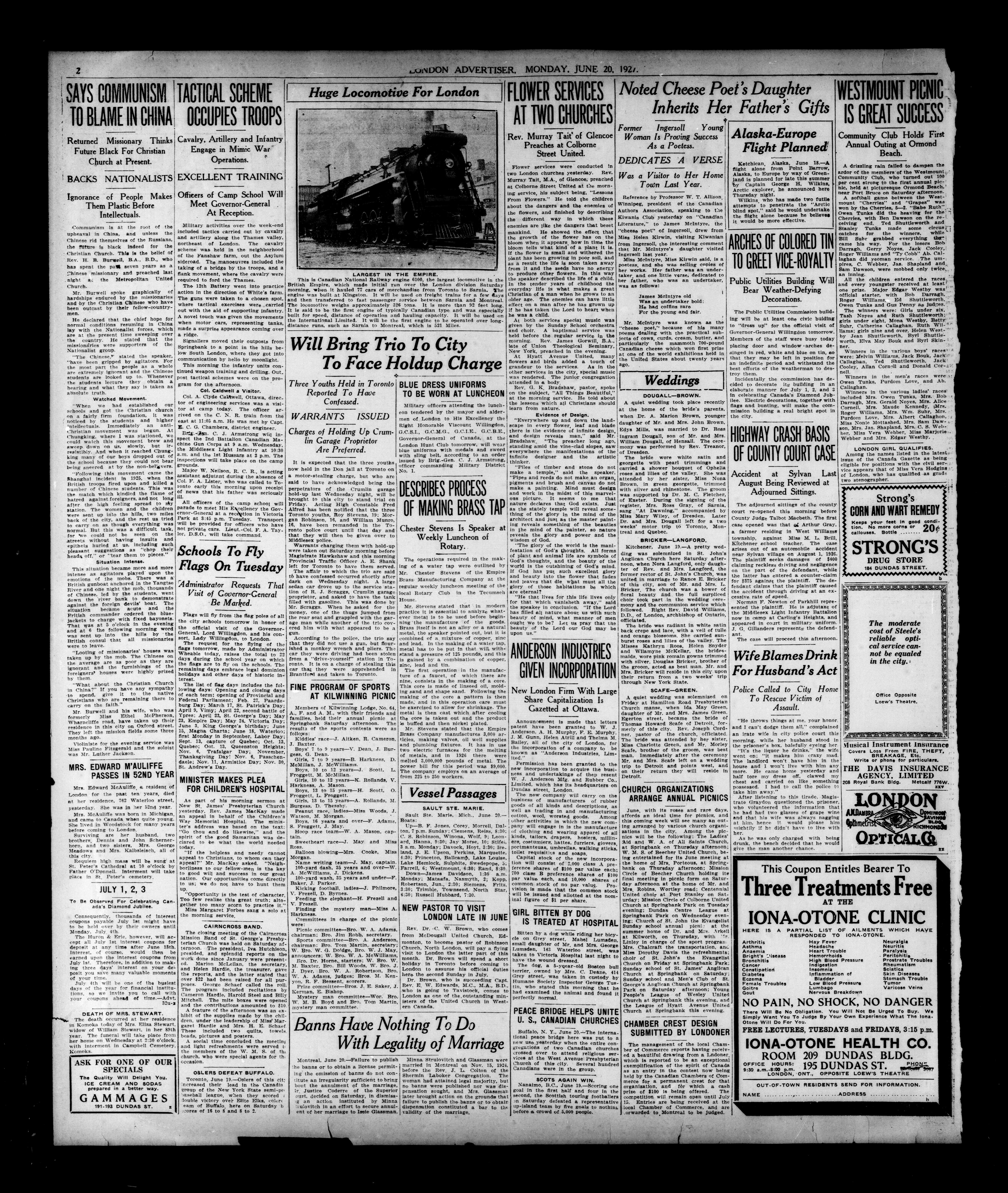 London, Ontario : London Advertiser Company, Limited, [1927]; 14 images, 0 avec recherche en texte intégral