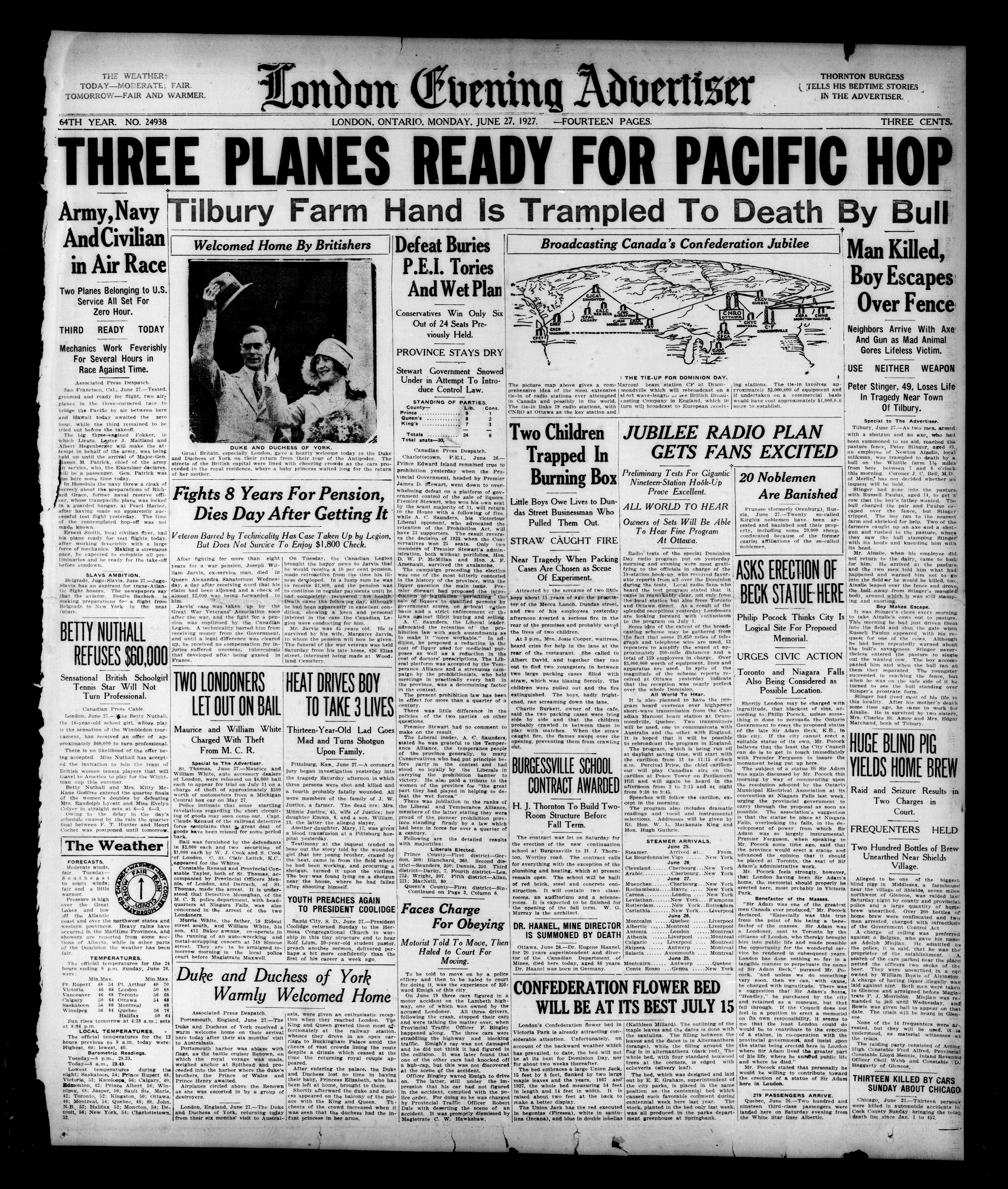London evening advertiser : 64th Year, No. 24938 (June 27, 1927)