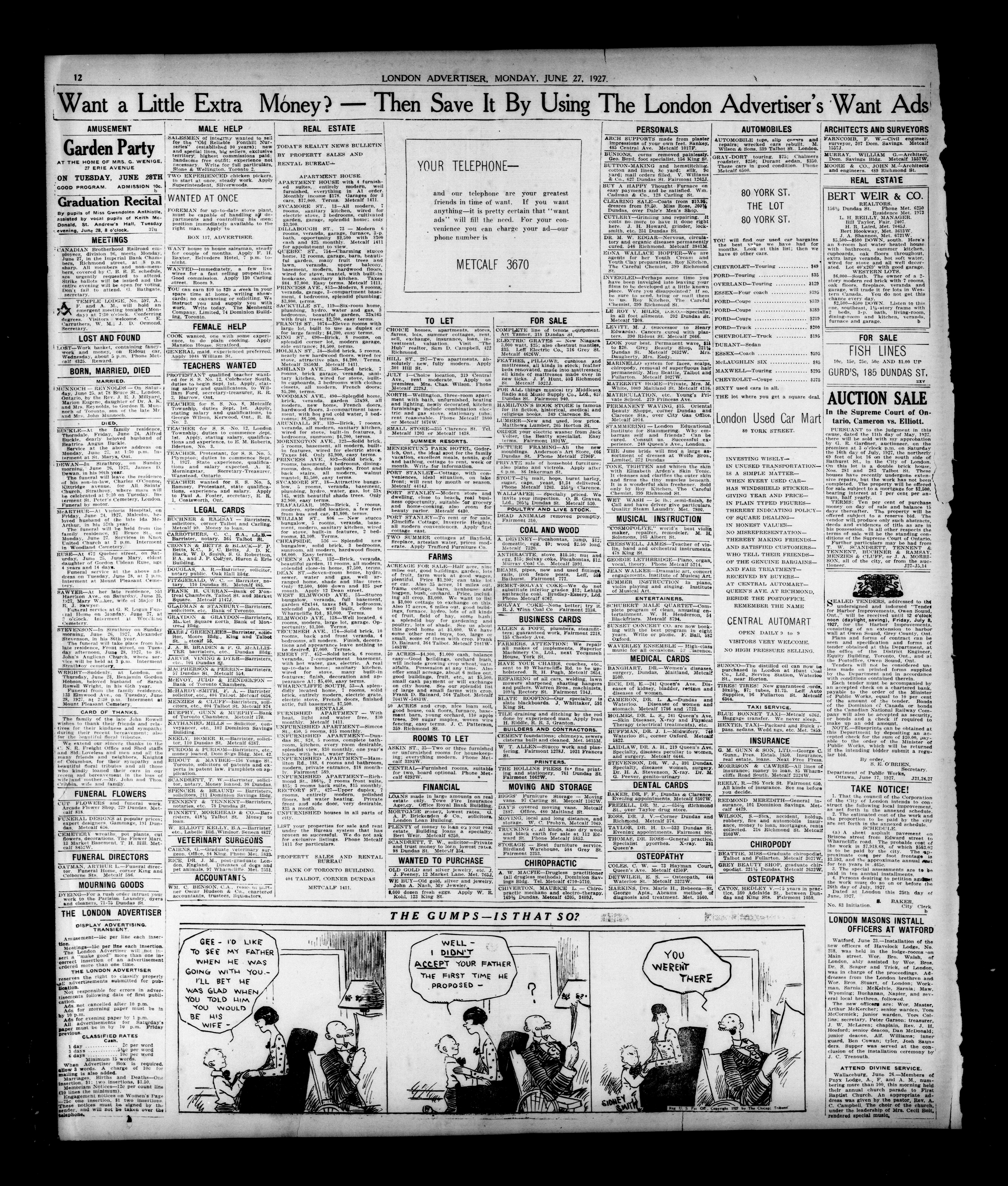 London, Ontario : London Advertiser Company, Limited, [1927]; 14 images, 0 avec recherche en texte intégral