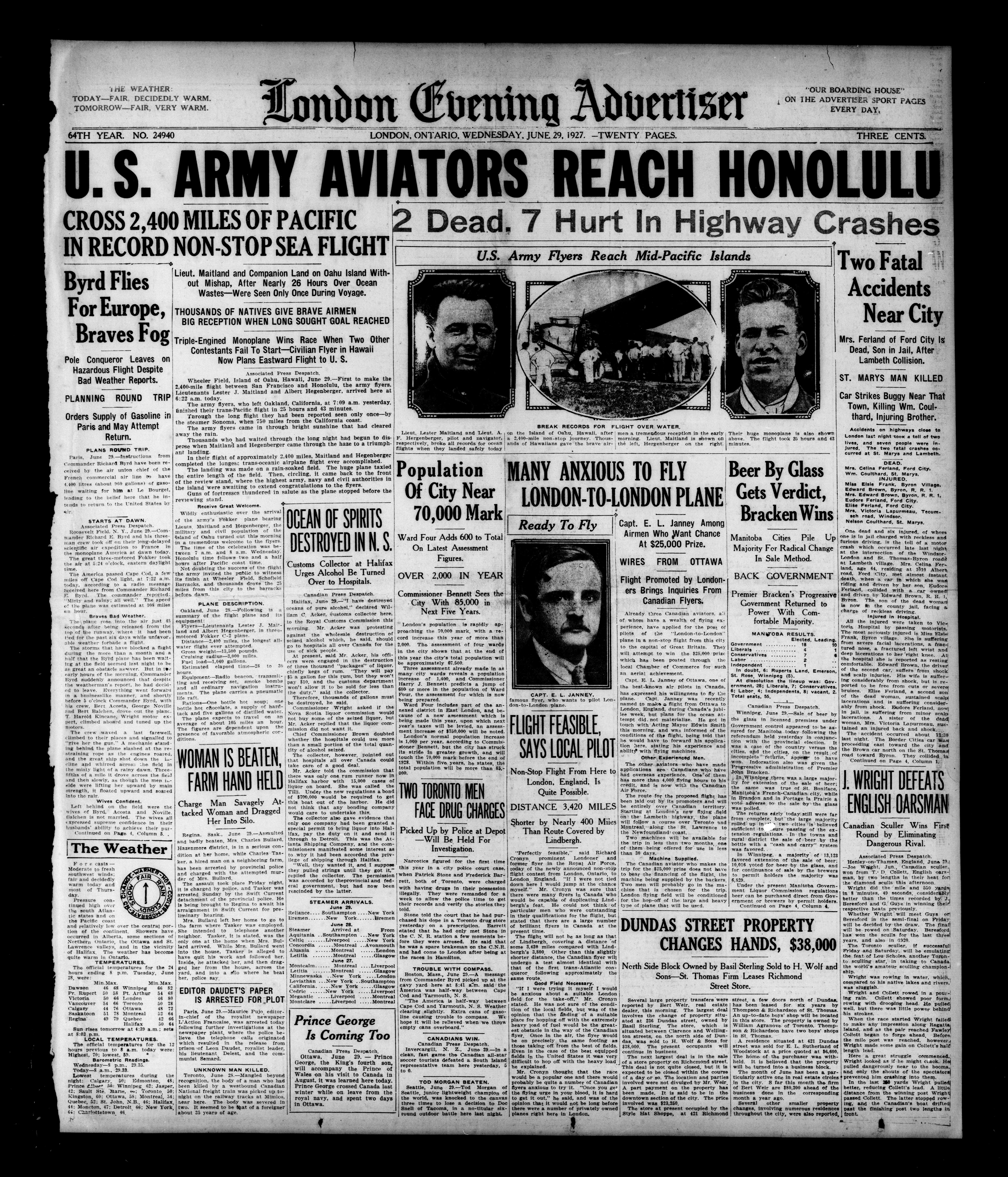 London evening advertiser : 64th Year, No. 24940 (June 29, 1927)