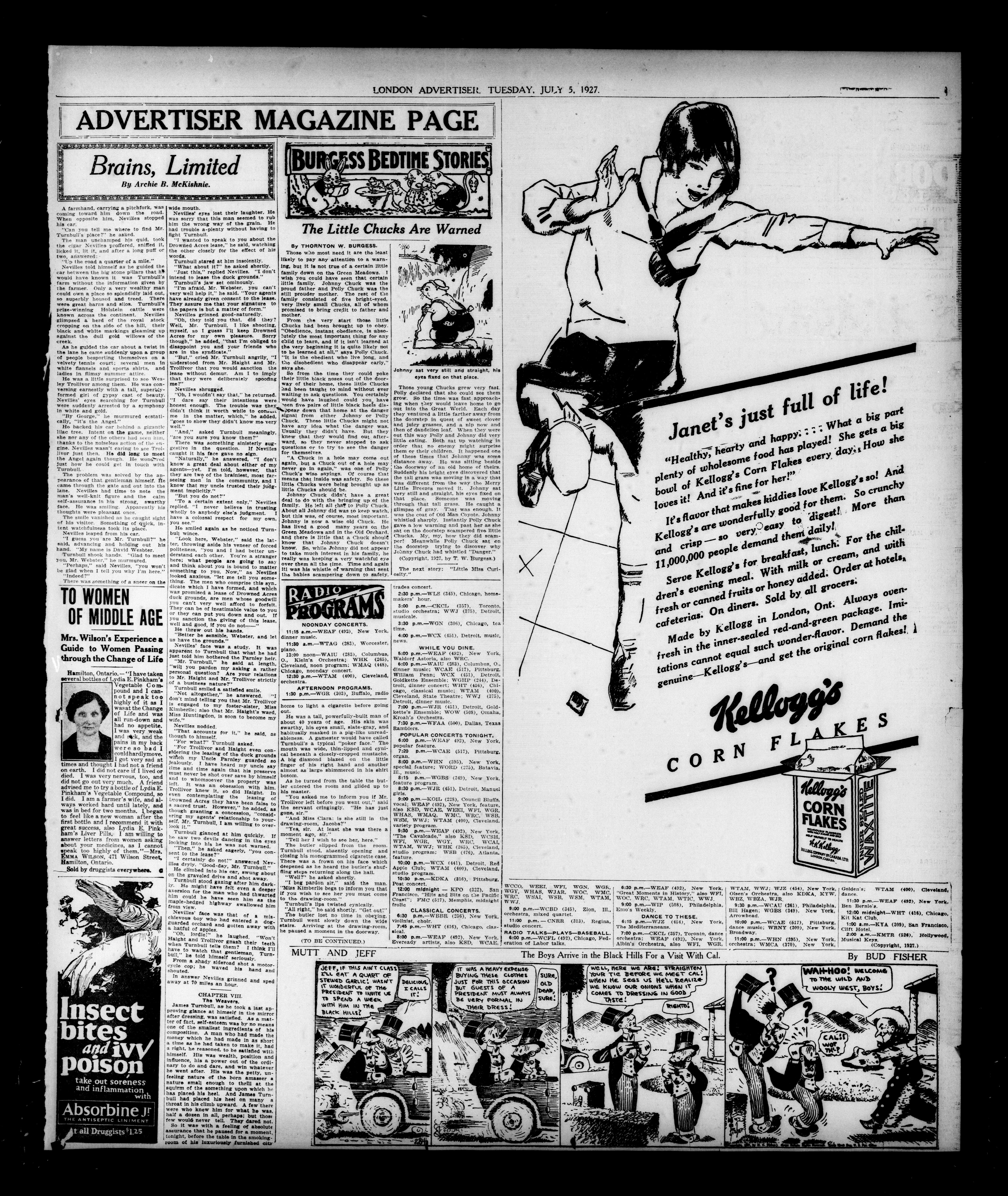 Aide London, Ontario : London Advertiser Company, Limited, [1927]; 14 images, 0 avec recherche en texte intégral