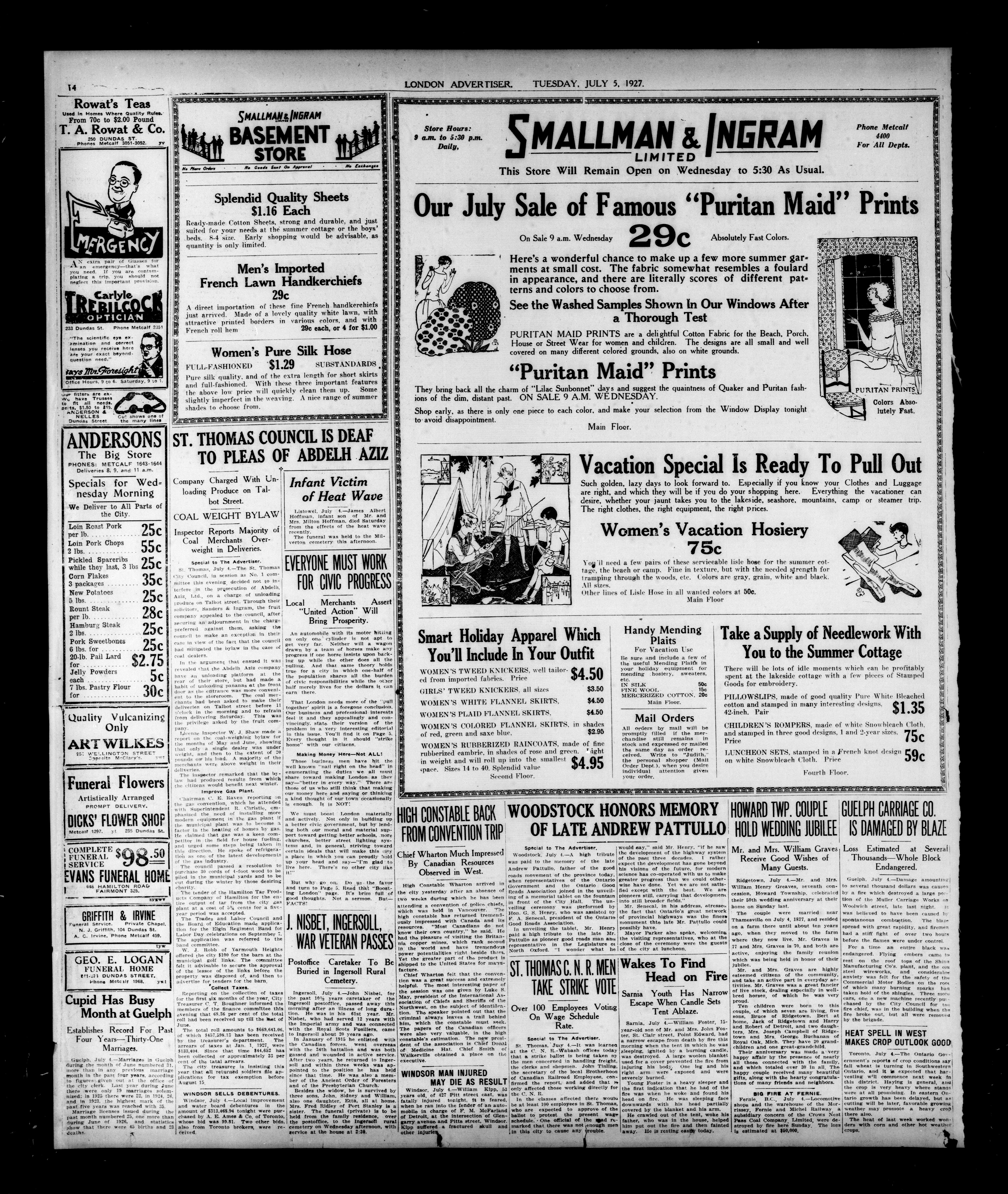 London, Ontario : London Advertiser Company, Limited, [1927]; 14 images, 0 avec recherche en texte intégral
