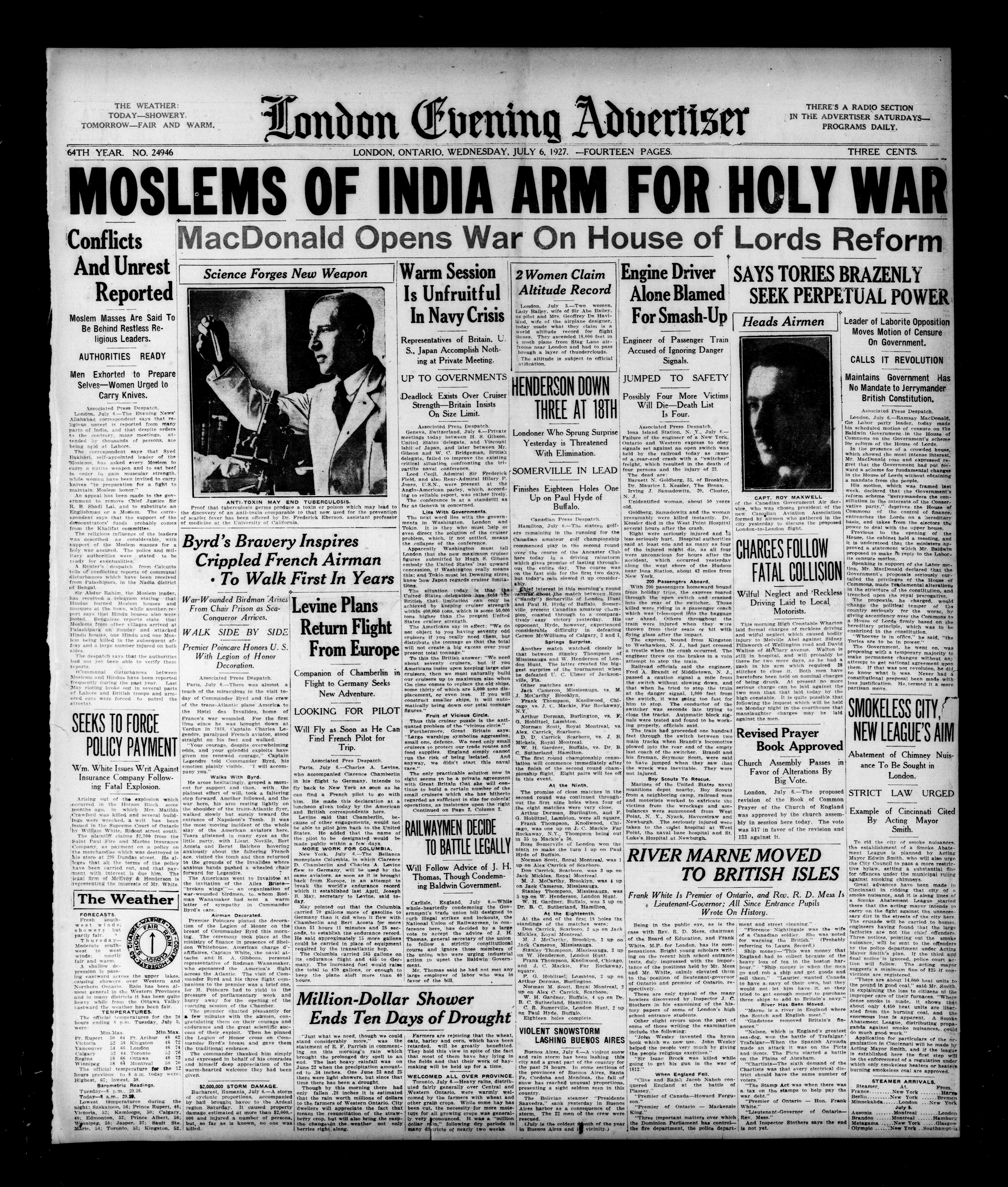 London evening advertiser : 64th Year, No. 24946 (July 6, 1927)