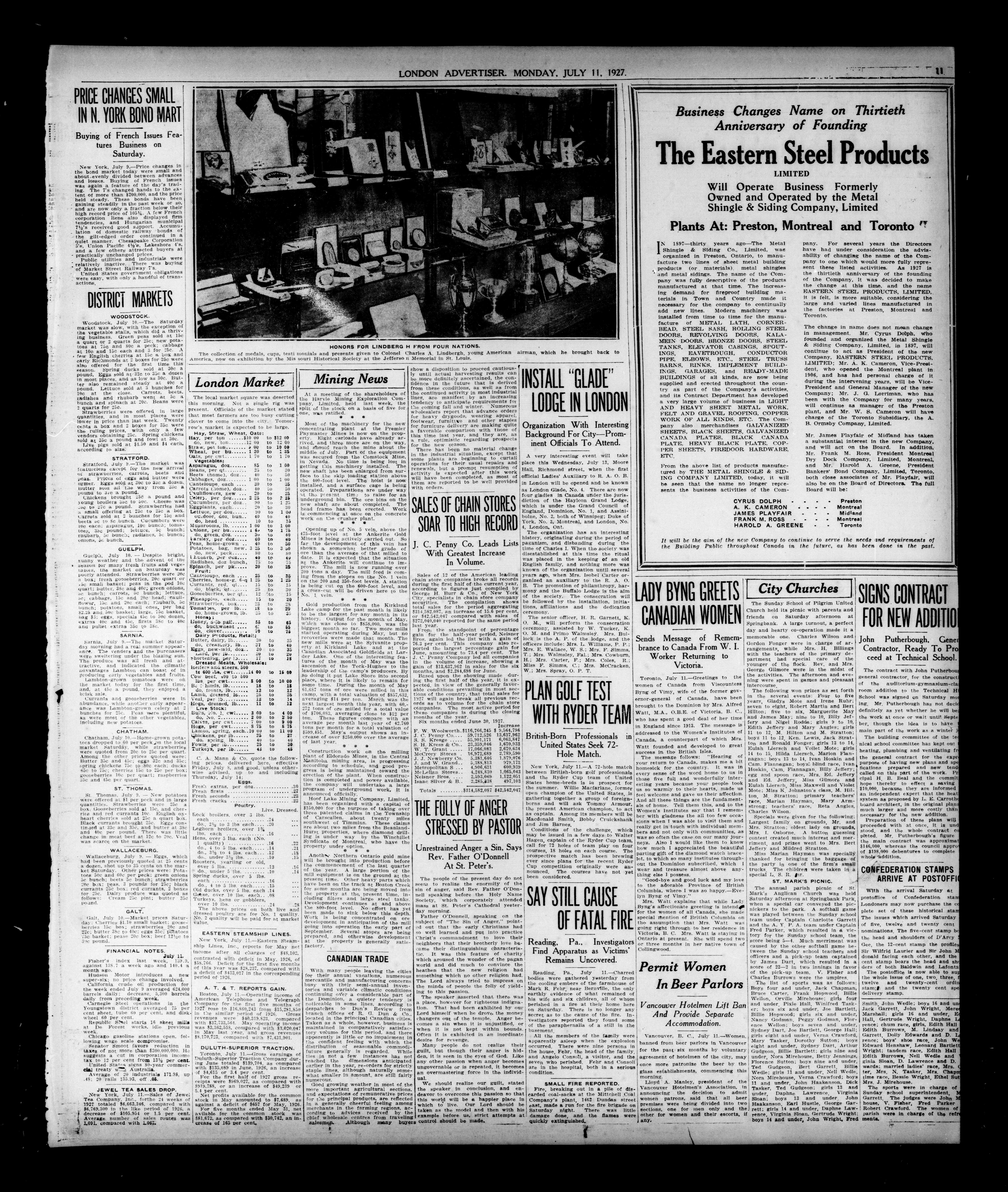 London evening advertiser : 64th Year, No. 24950 (July 11, 1927) - Published
