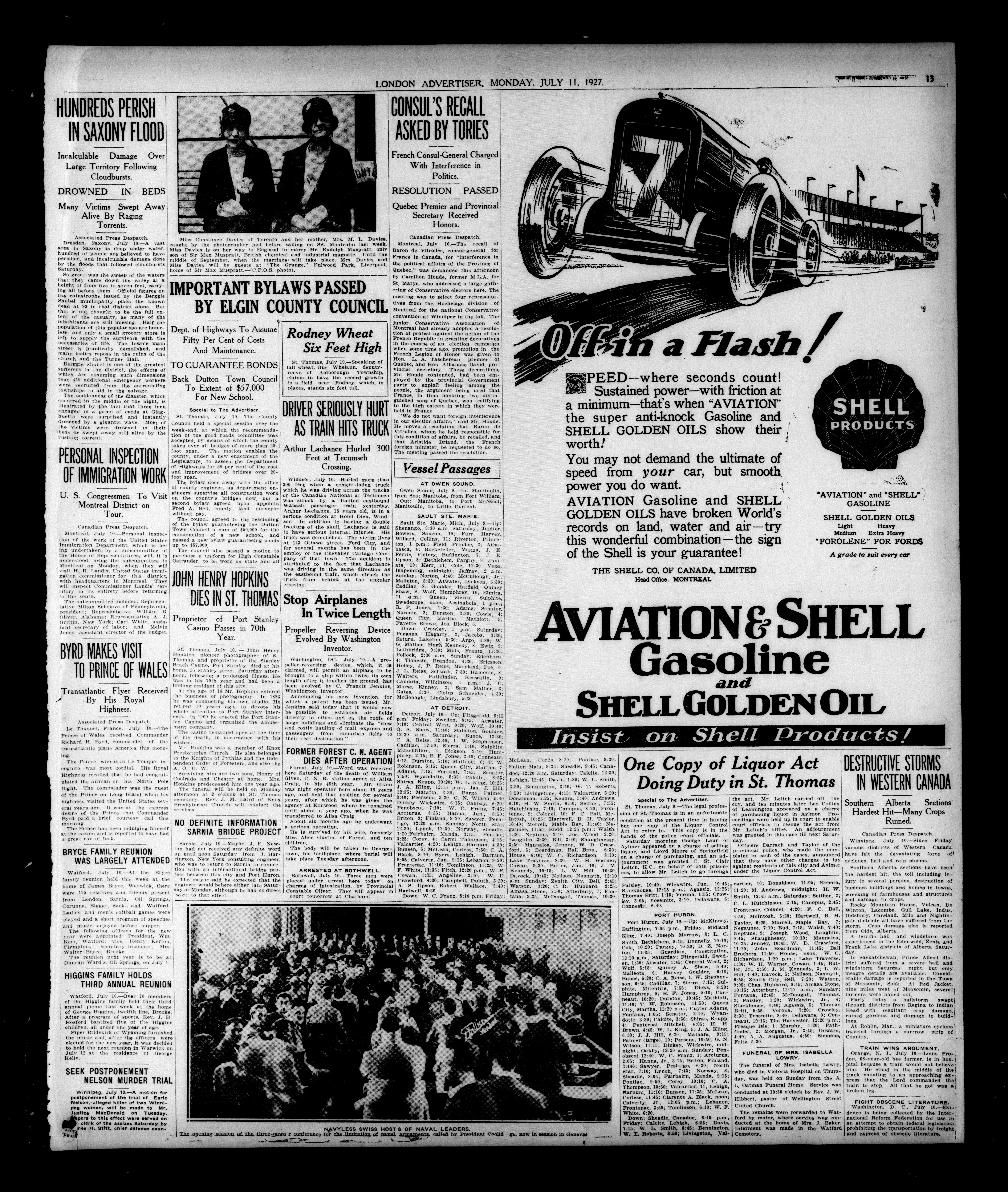 London, Ontario : London Advertiser Company, Limited, [1927]; 14 images, 0 avec recherche en texte intégral