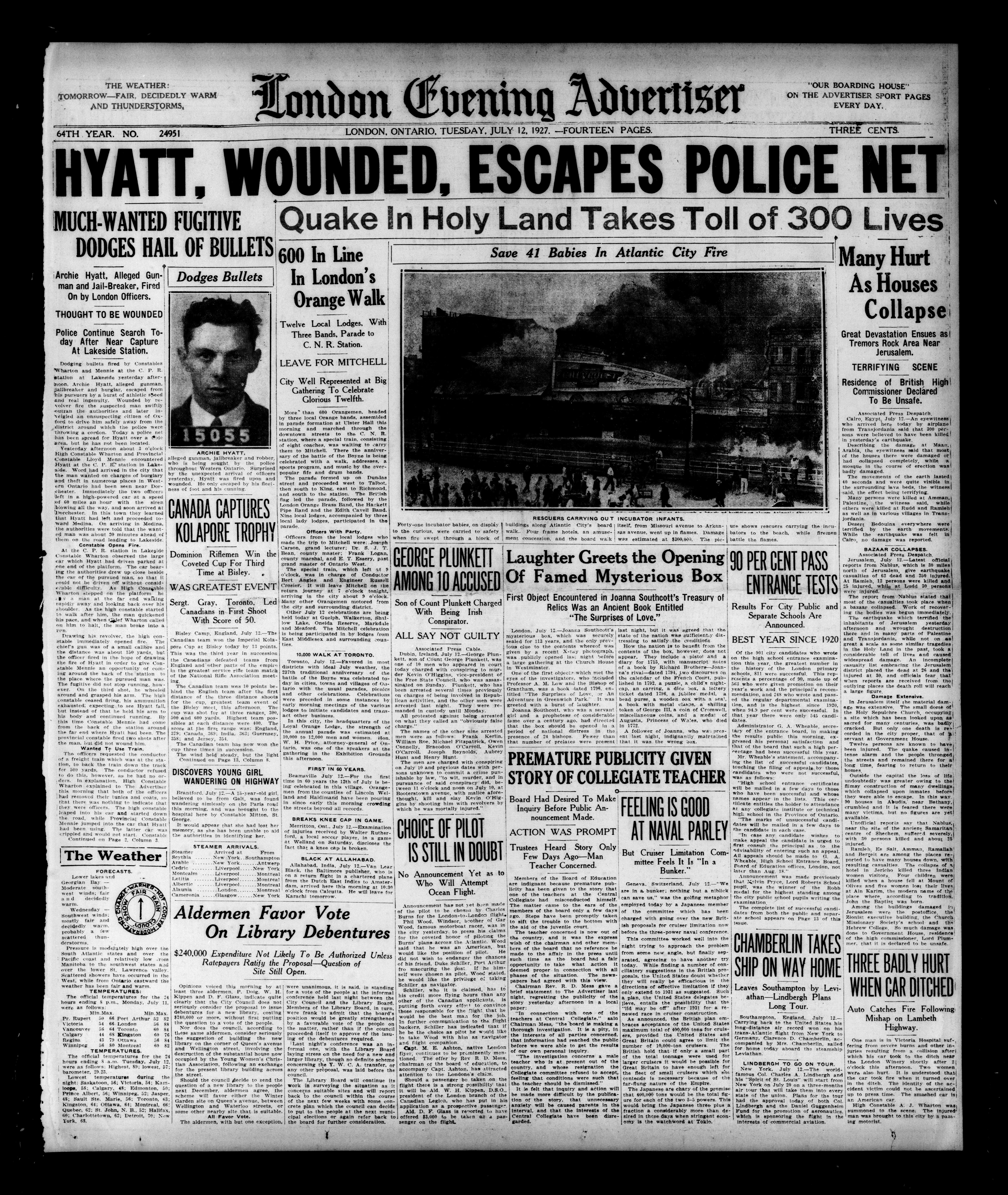 London Evening Advertiser. : London evening advertiser : 64th Year, No. 24951 (July 12, 1927)