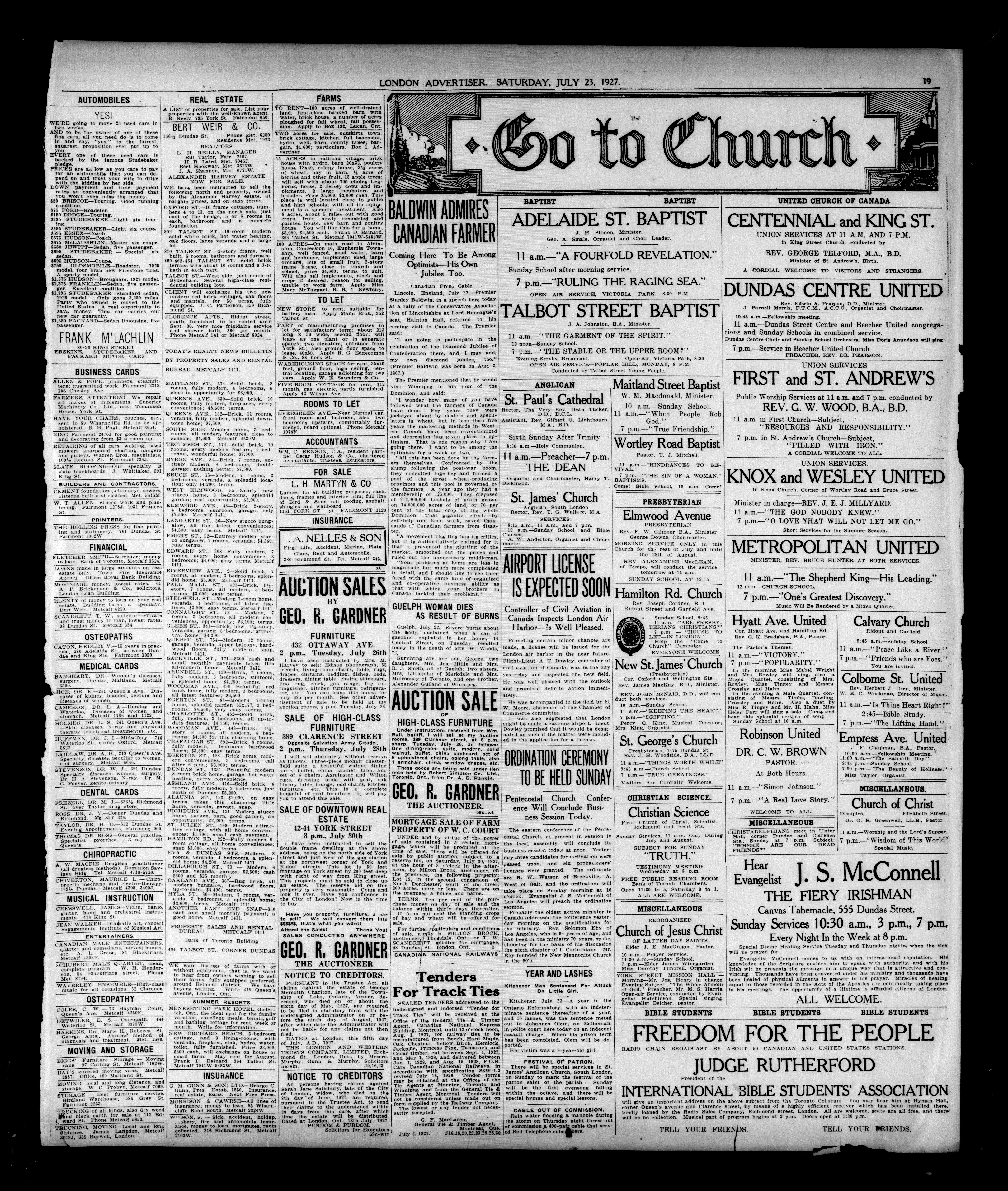 London, Ontario : London Advertiser Company, Limited, [1927]; 20 images, 0 avec recherche en texte intégral
