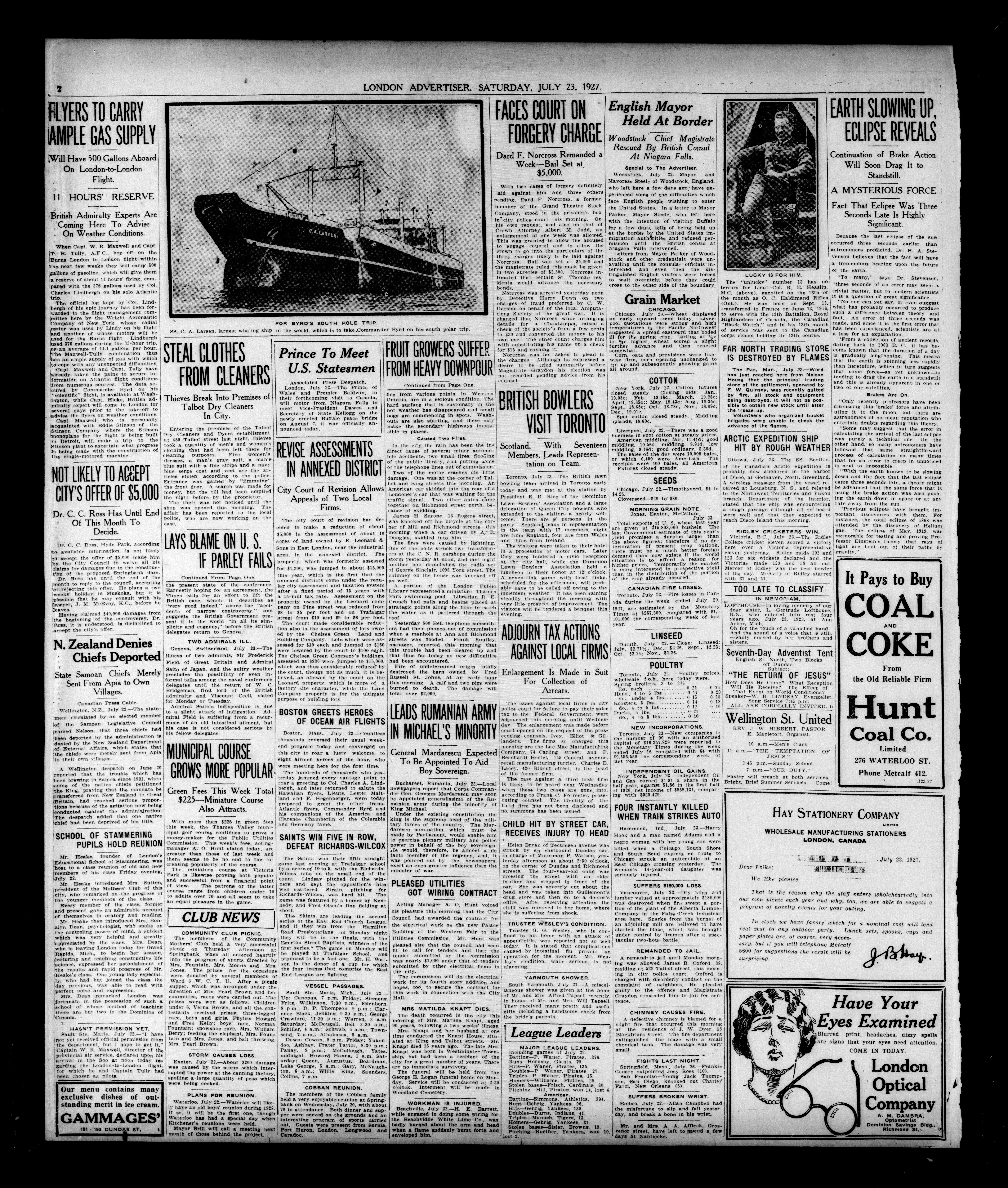 London Evening Advertiser. : London evening advertiser : 64th Year, No. 24961 (July 23, 1927)