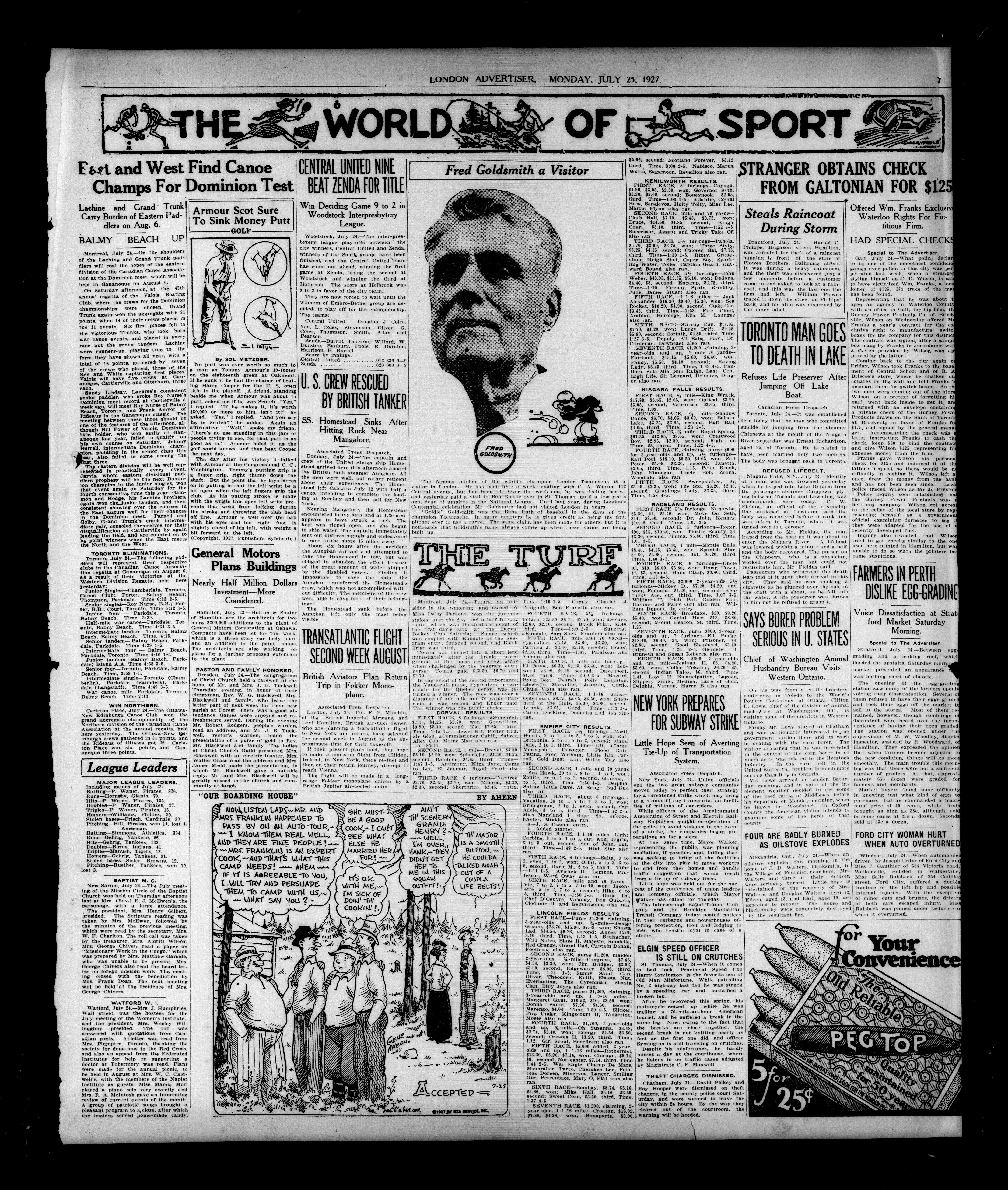 London Evening Advertiser. : London evening advertiser : 64th Year, No. 24962 (July 25, 1927)