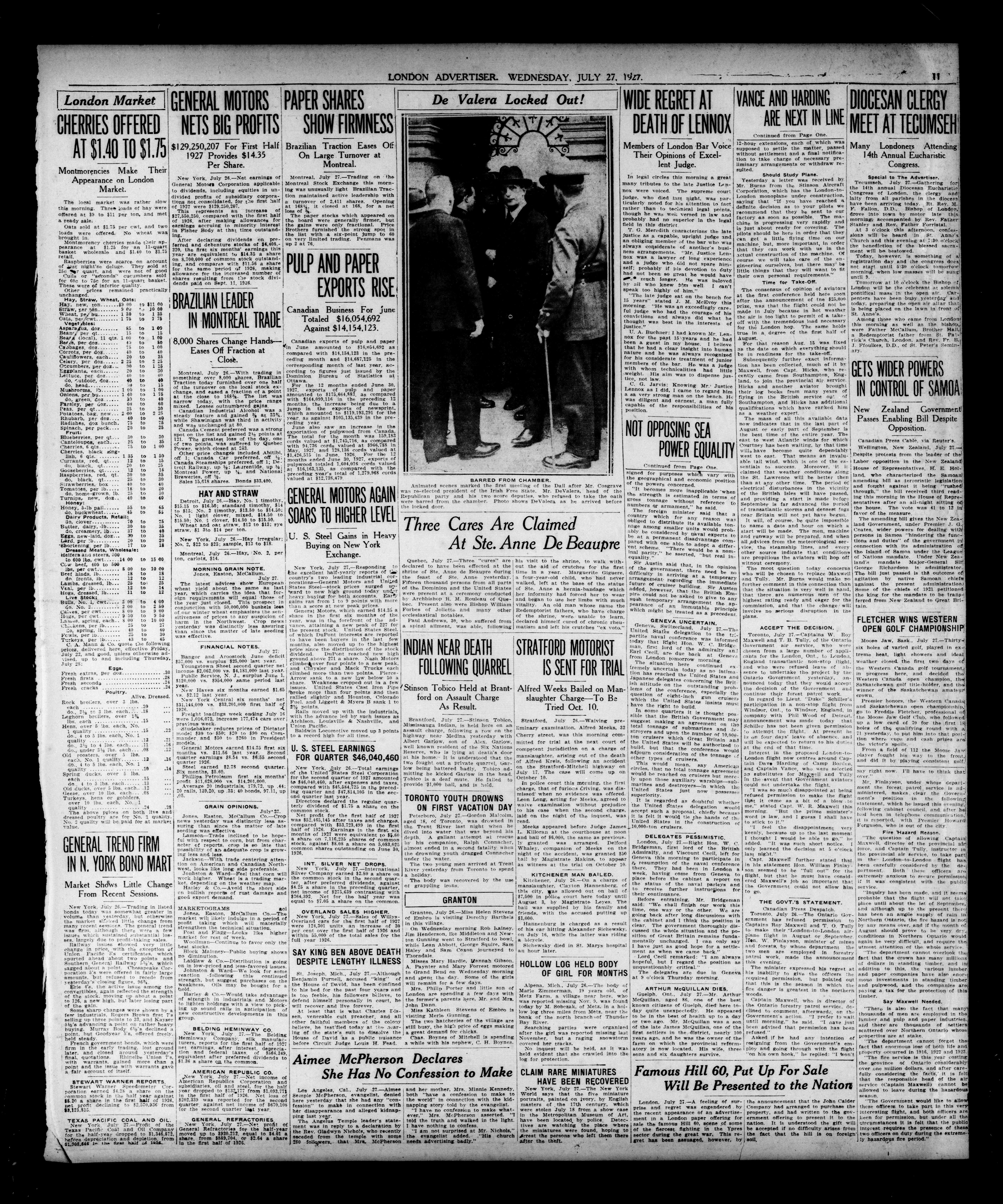London, Ontario : London Advertiser Company, Limited, [1927]; 14 images, 0 avec recherche en texte intégral