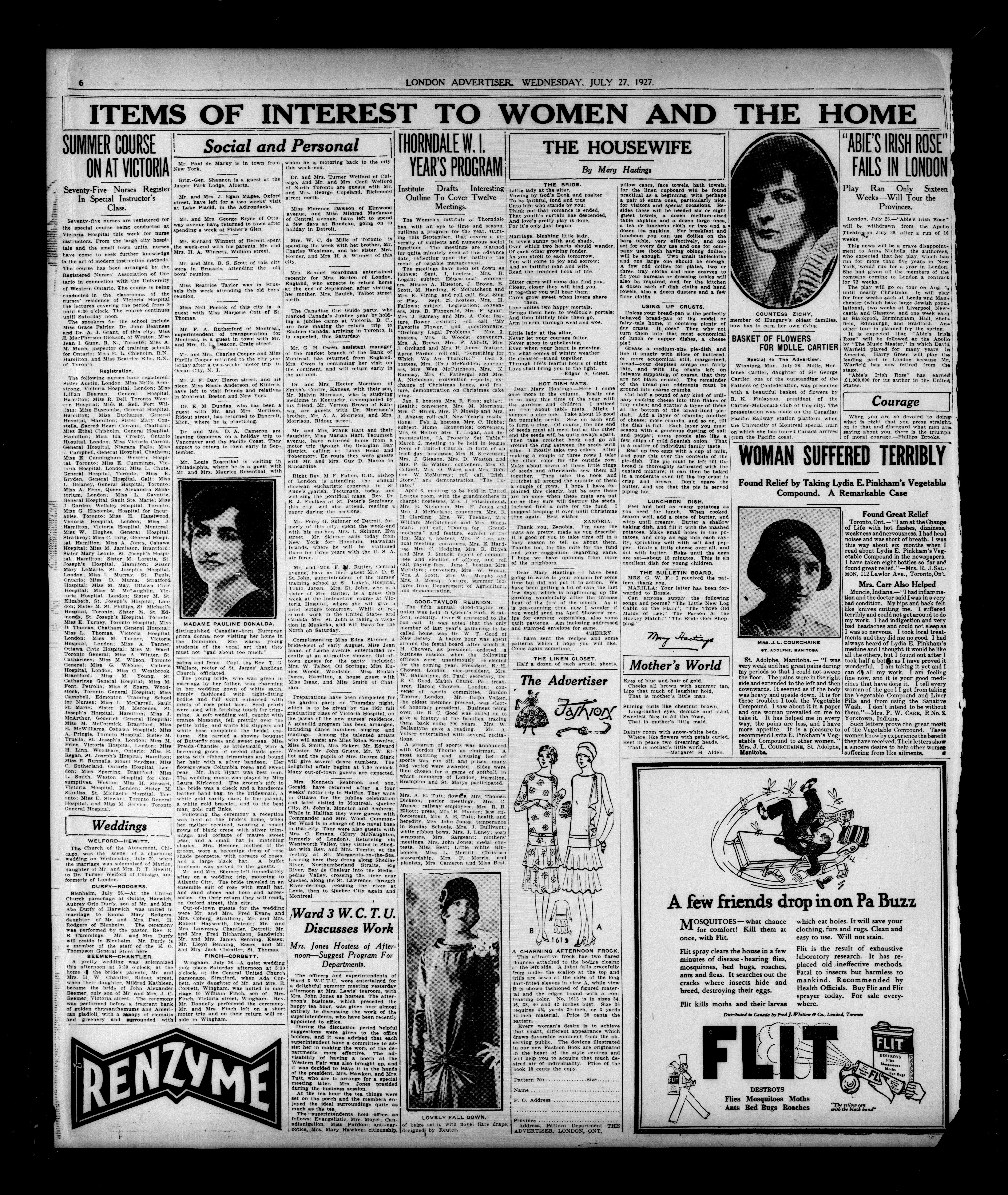 London, Ontario : London Advertiser Company, Limited, [1927]; 14 images, 0 avec recherche en texte intégral