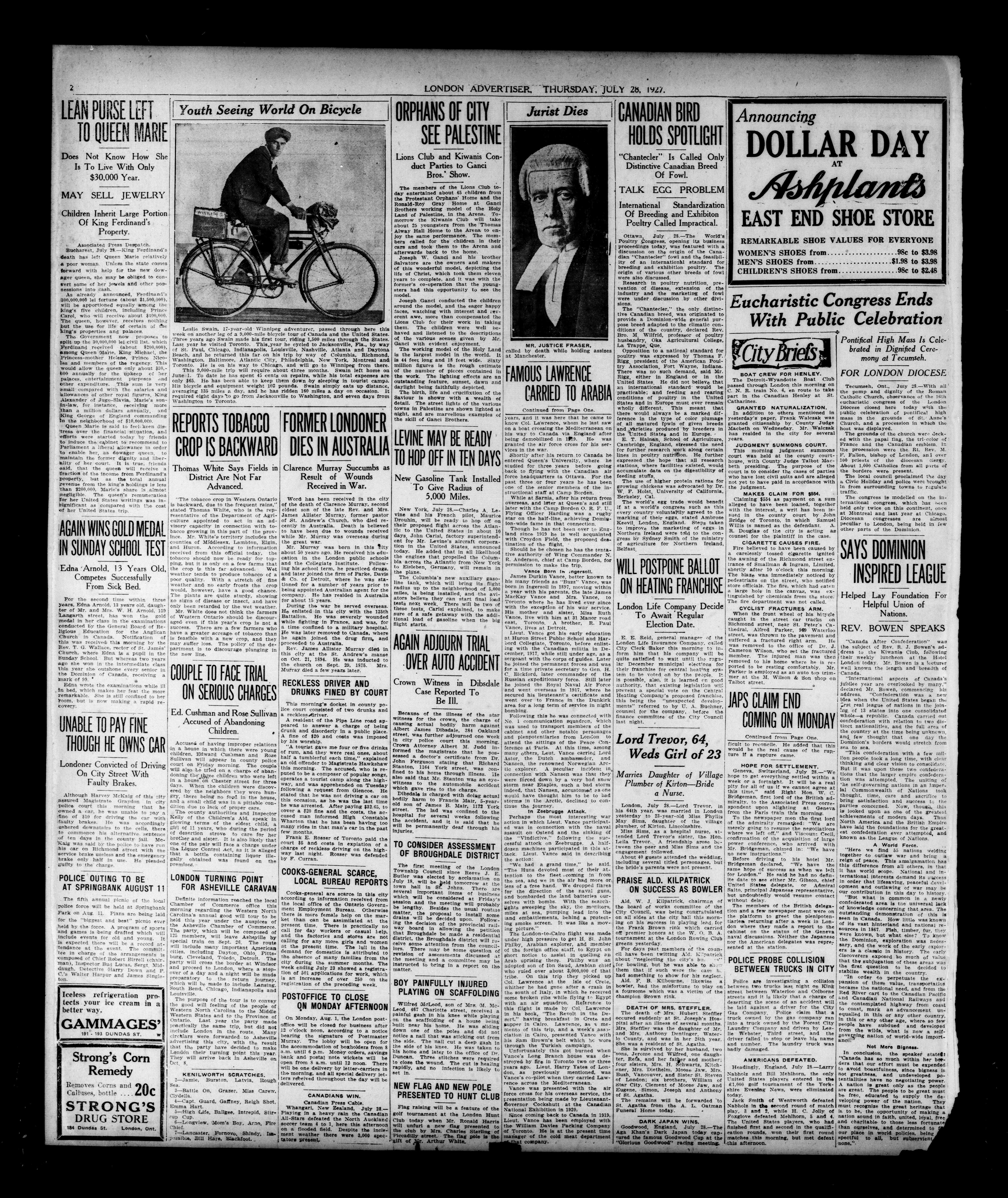 London evening advertiser : 64th Year, No. 24965 (July 28, 1927)