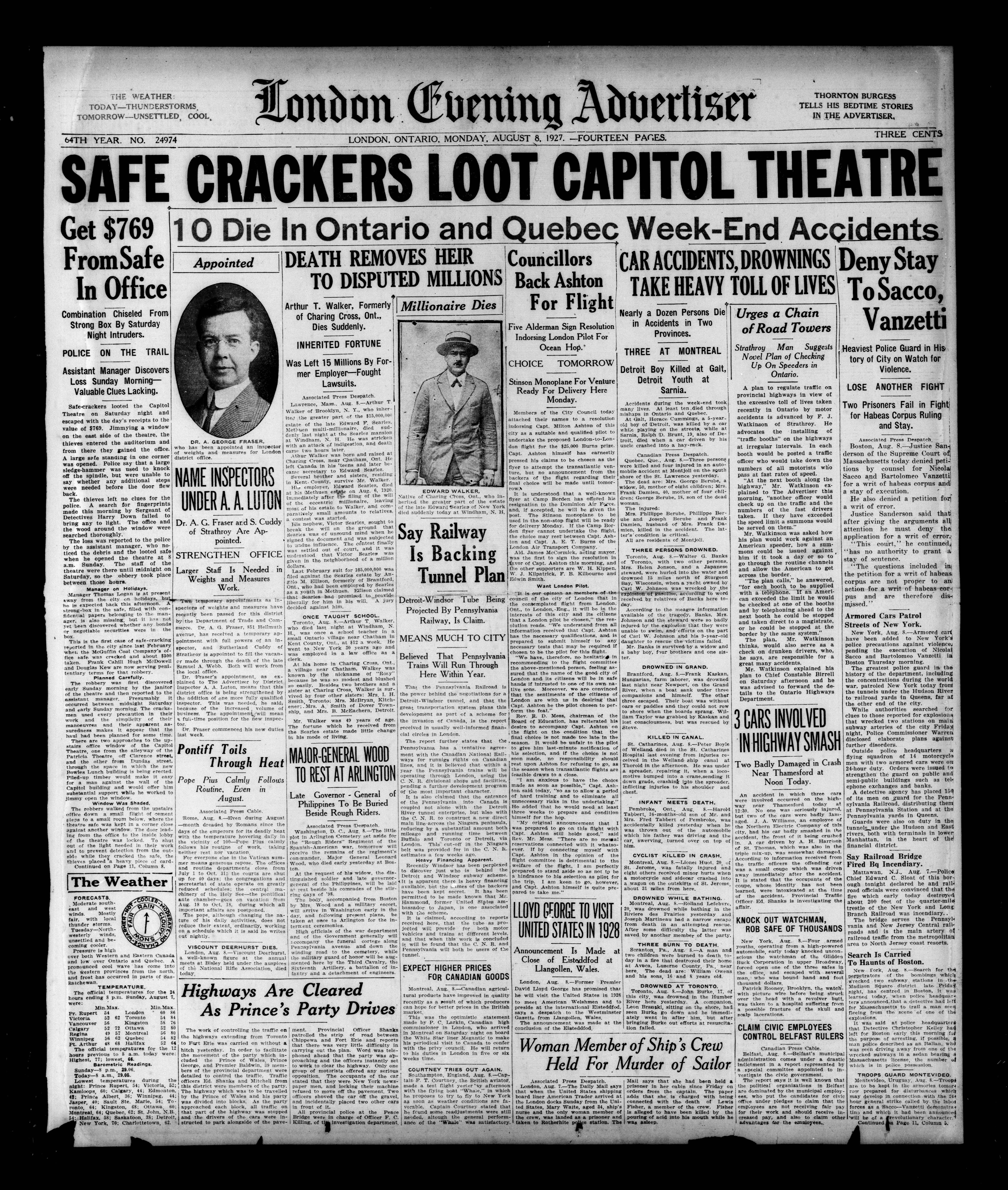 London Evening Advertiser. : London evening advertiser : 64th Year, No. 24974 (August 8, 1927)
