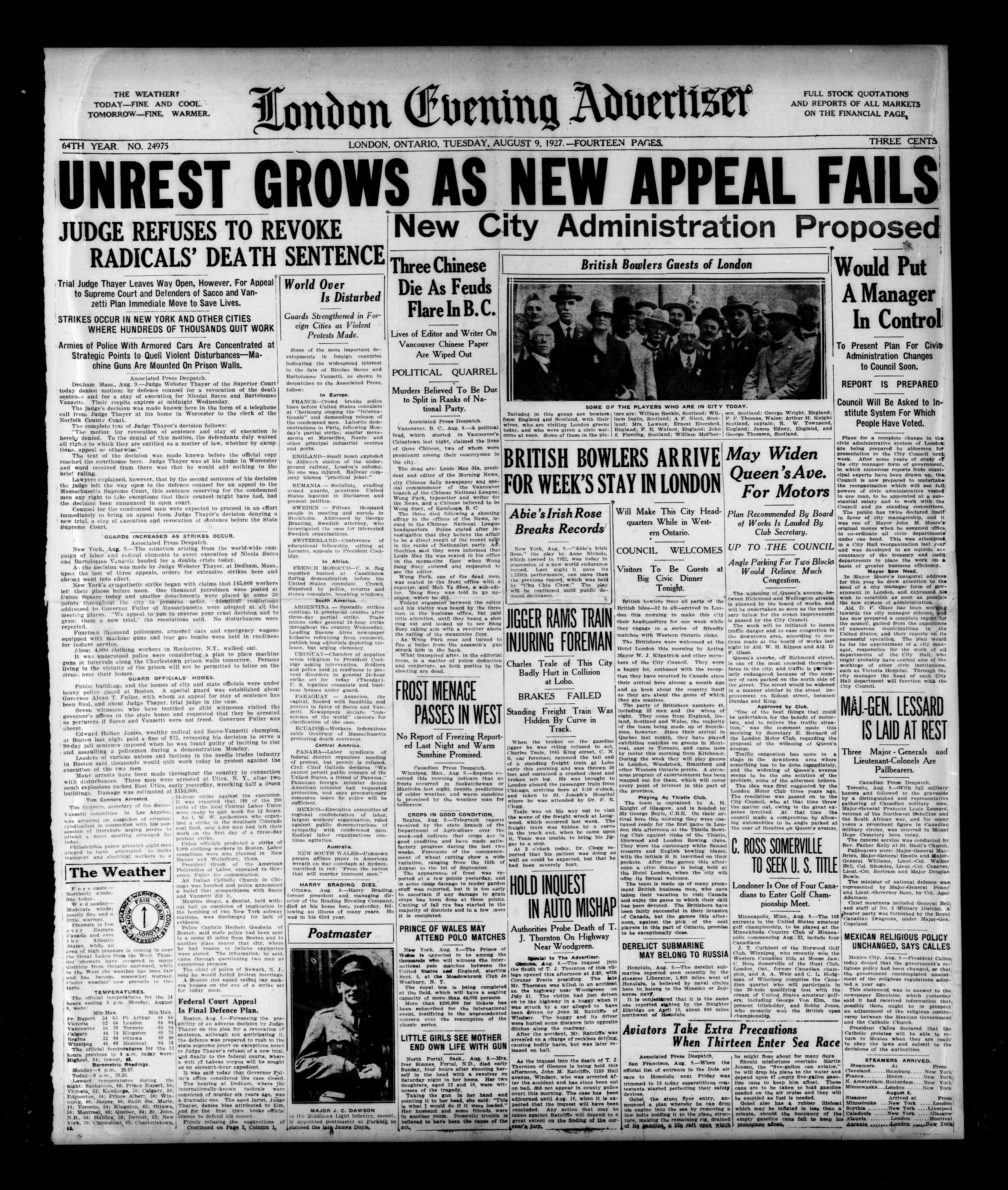 London Evening Advertiser. : London evening advertiser : 64th Year, No. 24975 (August 9, 1927)
