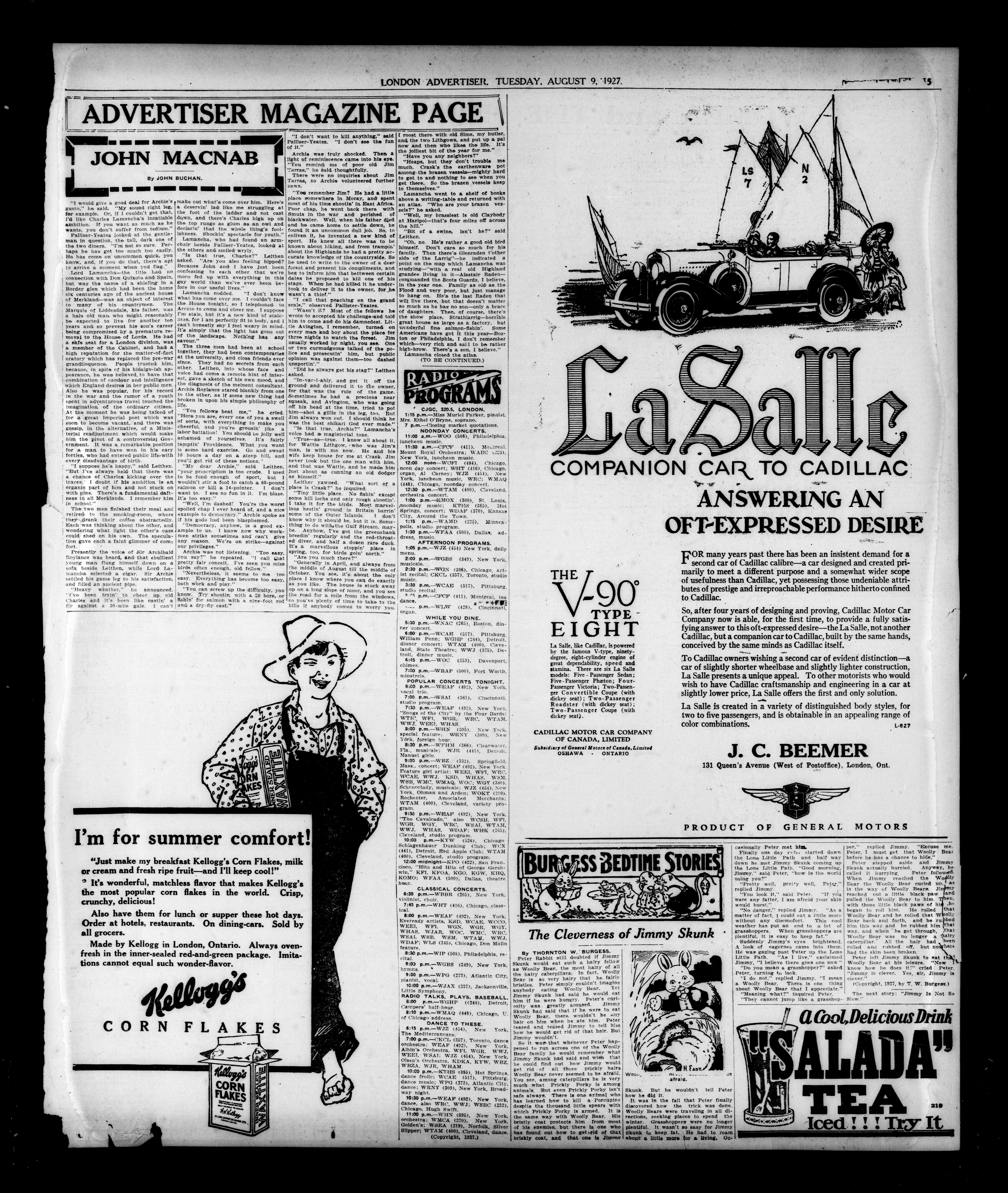 London, Ontario : London Advertiser Company, Limited, [1927]; 14 images, 0 avec recherche en texte intégral