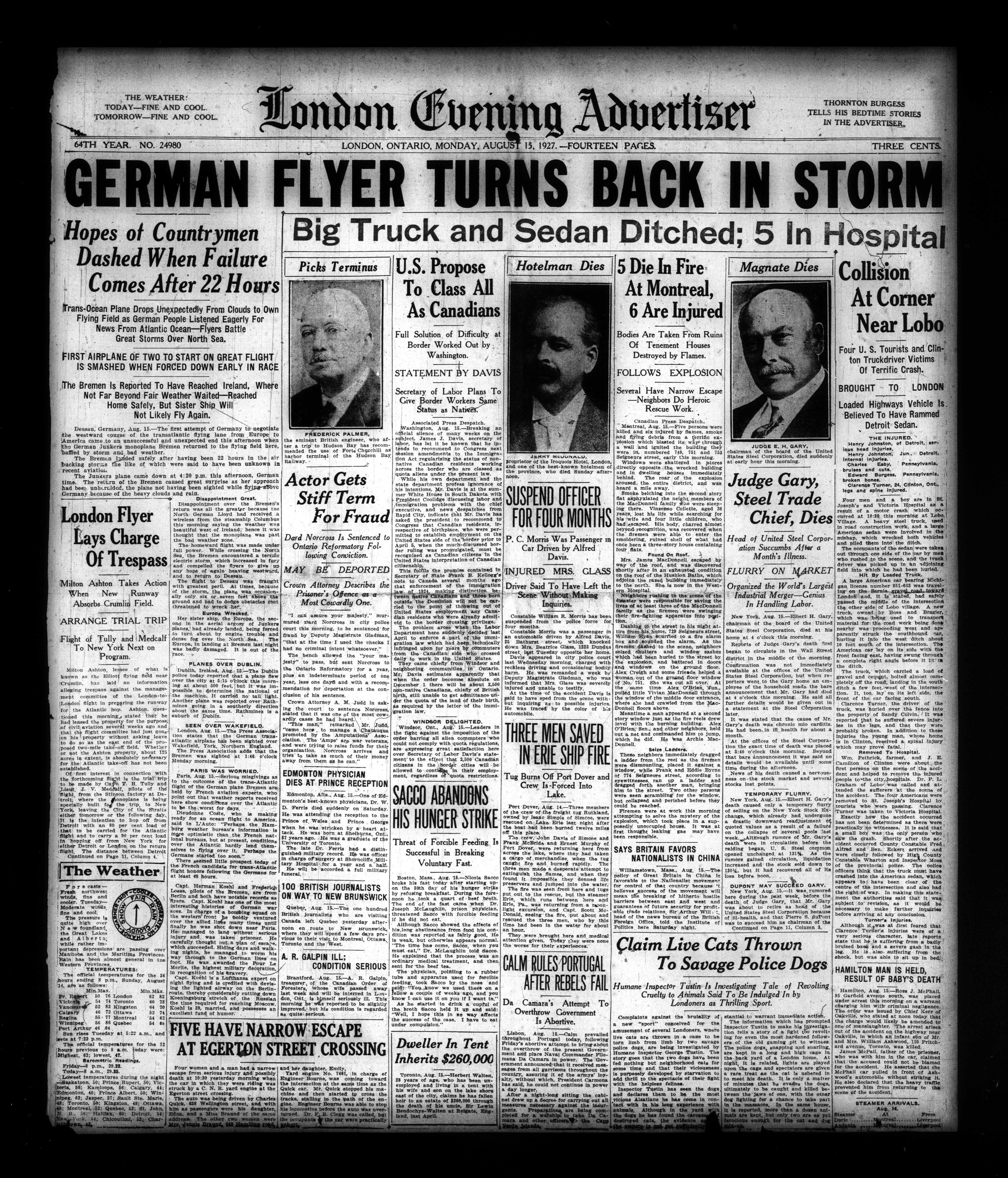 London Evening Advertiser. : London evening advertiser : 64th Year, No. 24980 (August 15, 1927)
