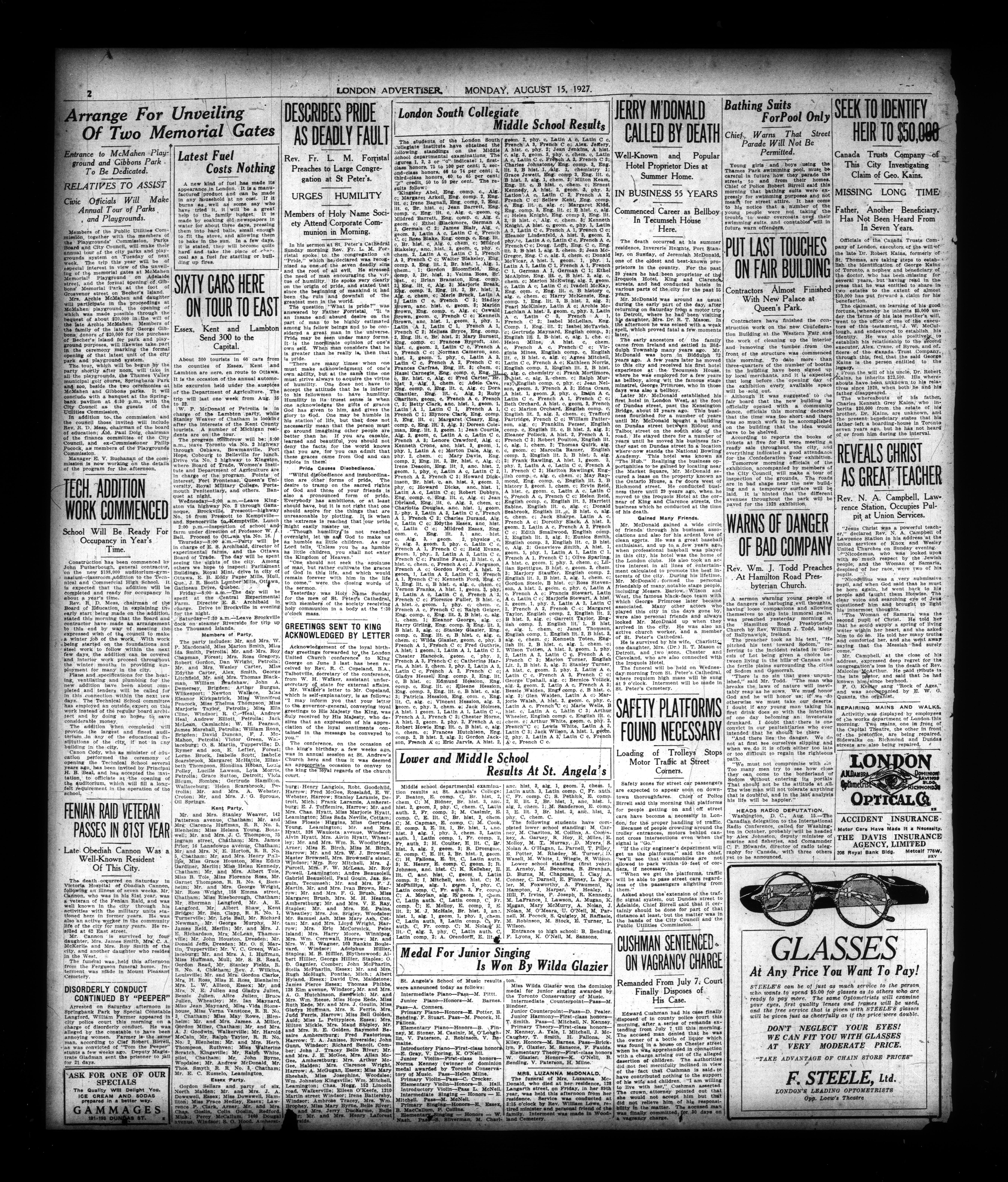 London, Ontario : London Advertiser Company, Limited, [1927]; 14 images, 0 avec recherche en texte intégral