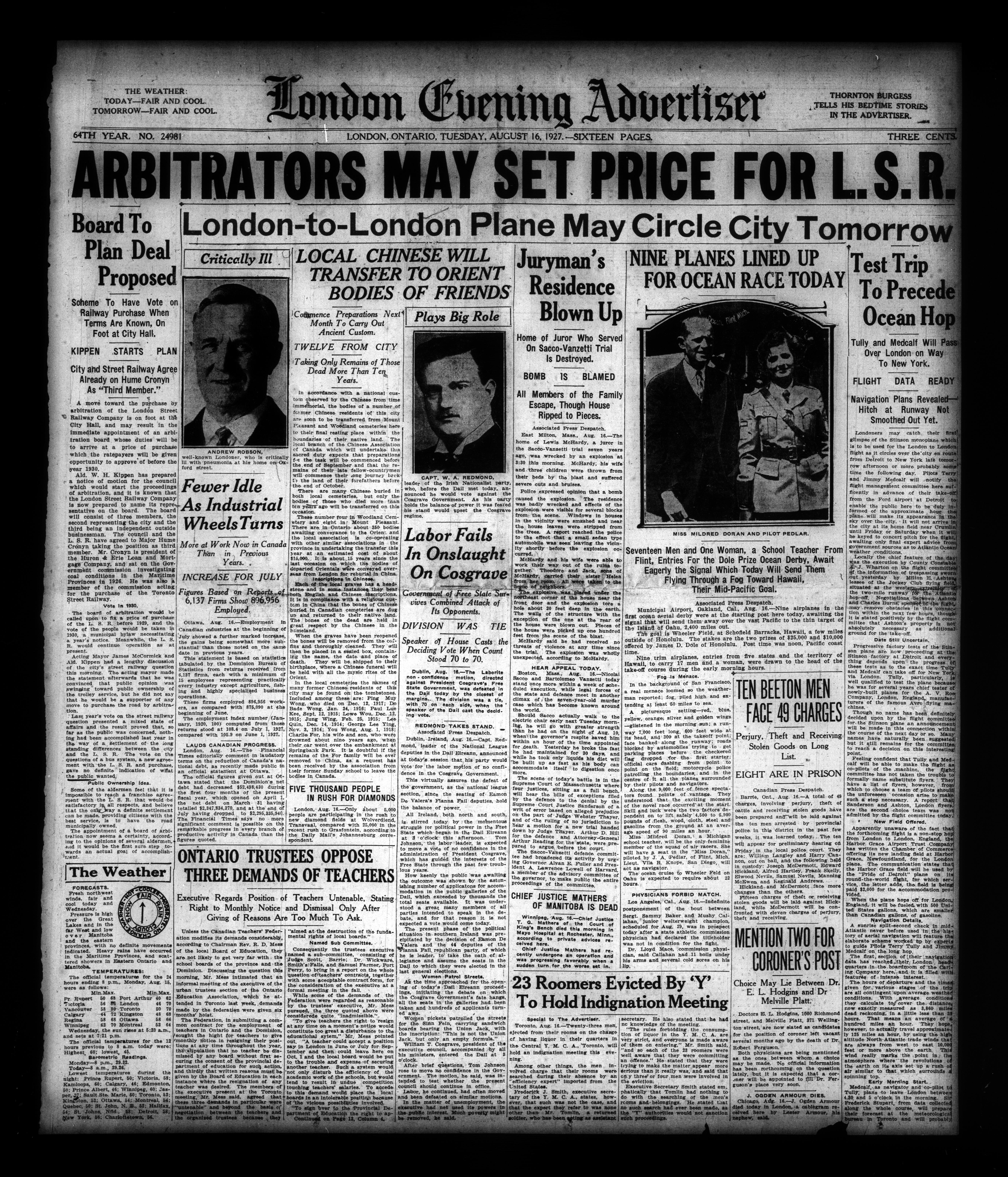 London Evening Advertiser. : London evening advertiser : 64th Year, No. 24981 (August 16, 1927)