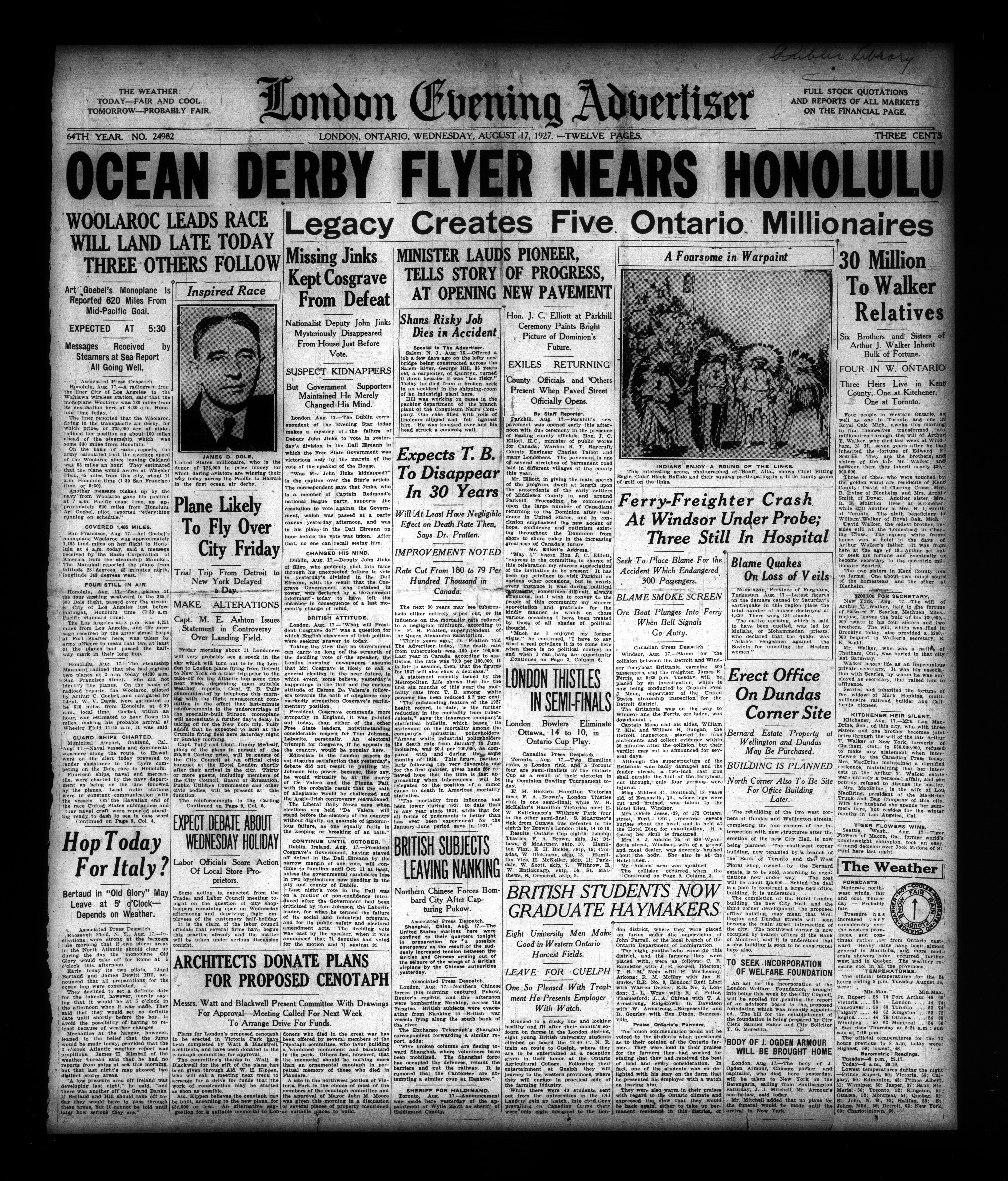 London Evening Advertiser. : London evening advertiser : 64th Year, No. 24982 (August 17, 1927)
