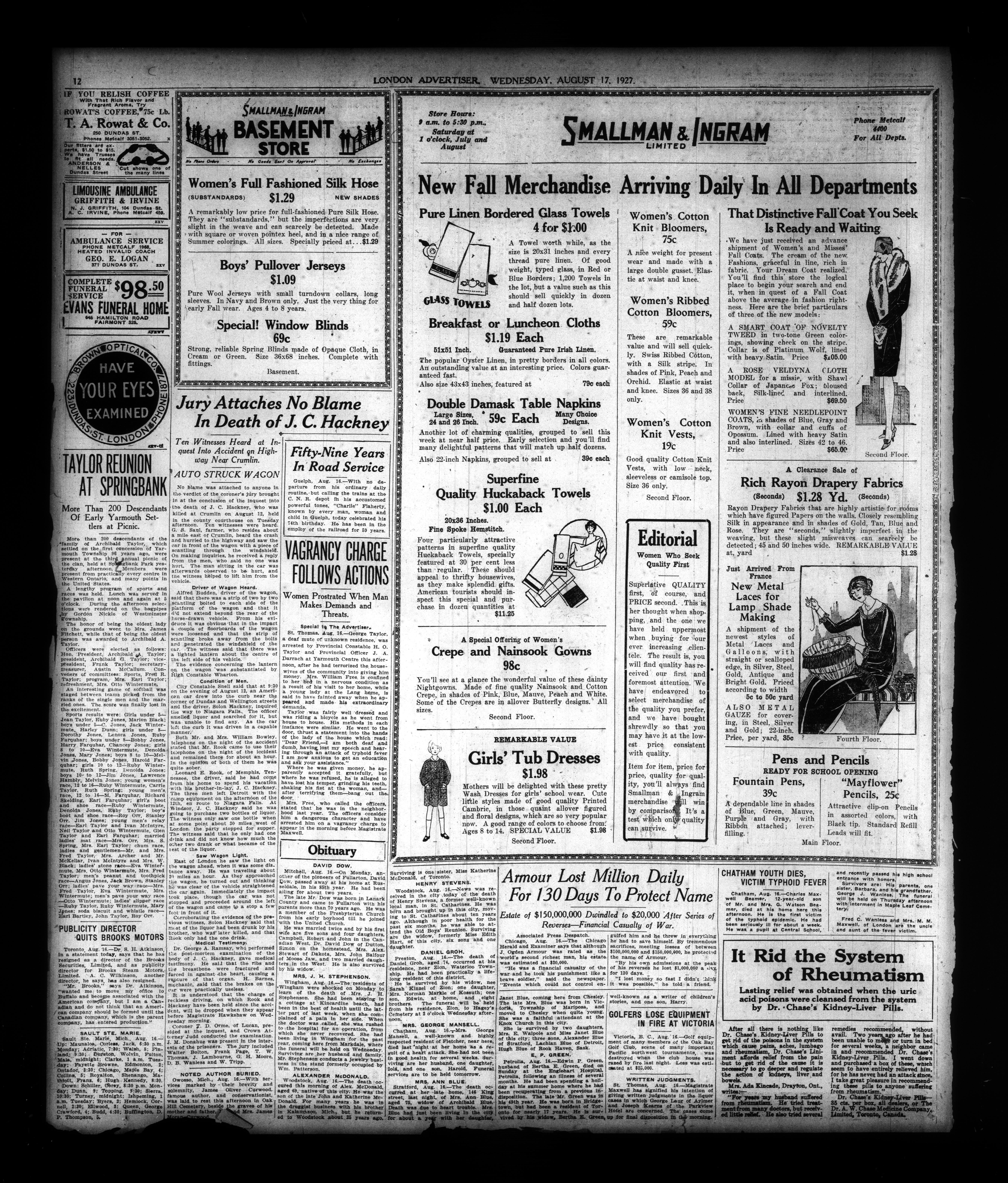 London, Ontario : London Advertiser Company, Limited, [1927]; 12 images, 0 avec recherche en texte intégral