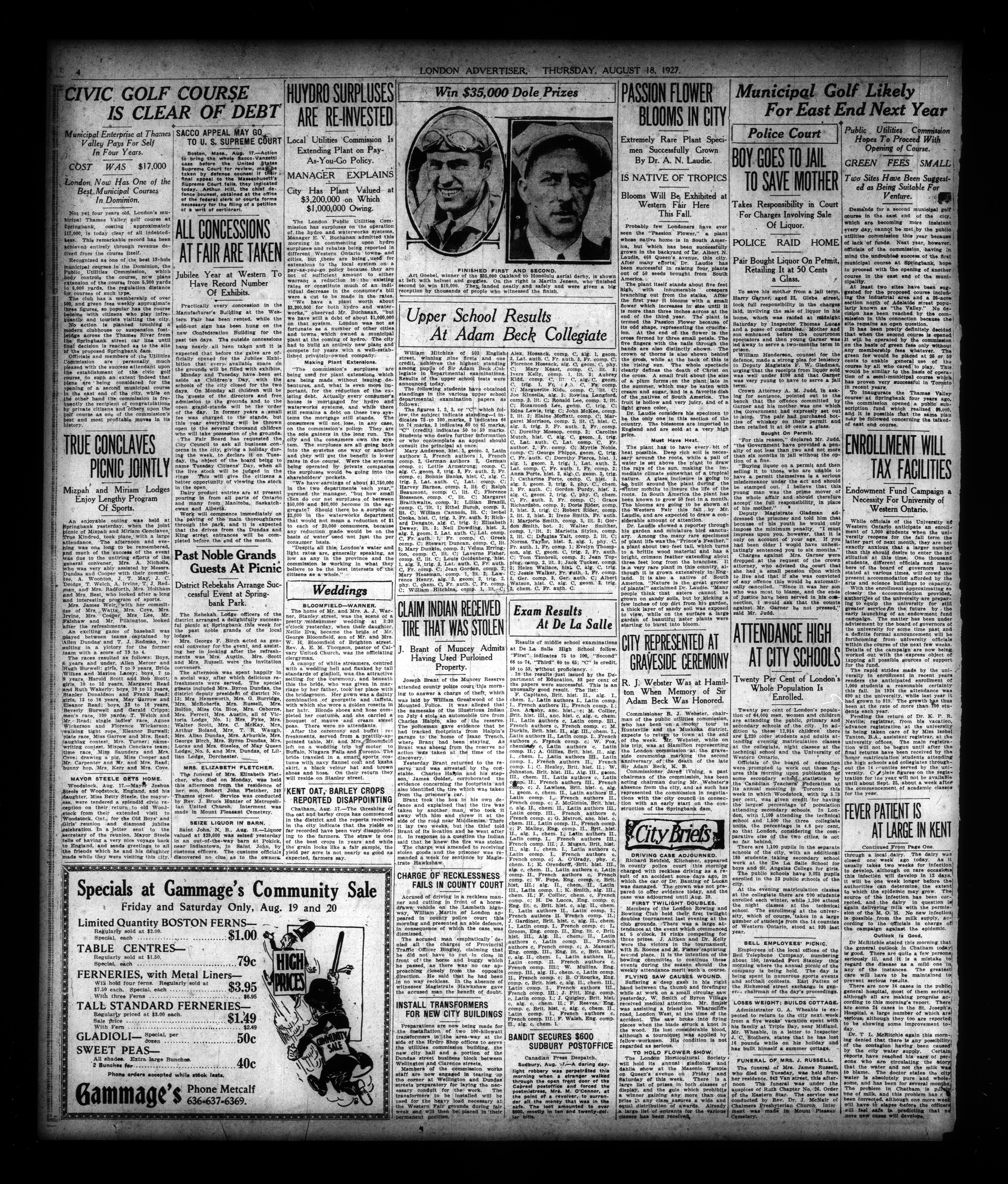 London, Ontario : London Advertiser Company, Limited, [1927]; 24 images, 0 avec recherche en texte intégral