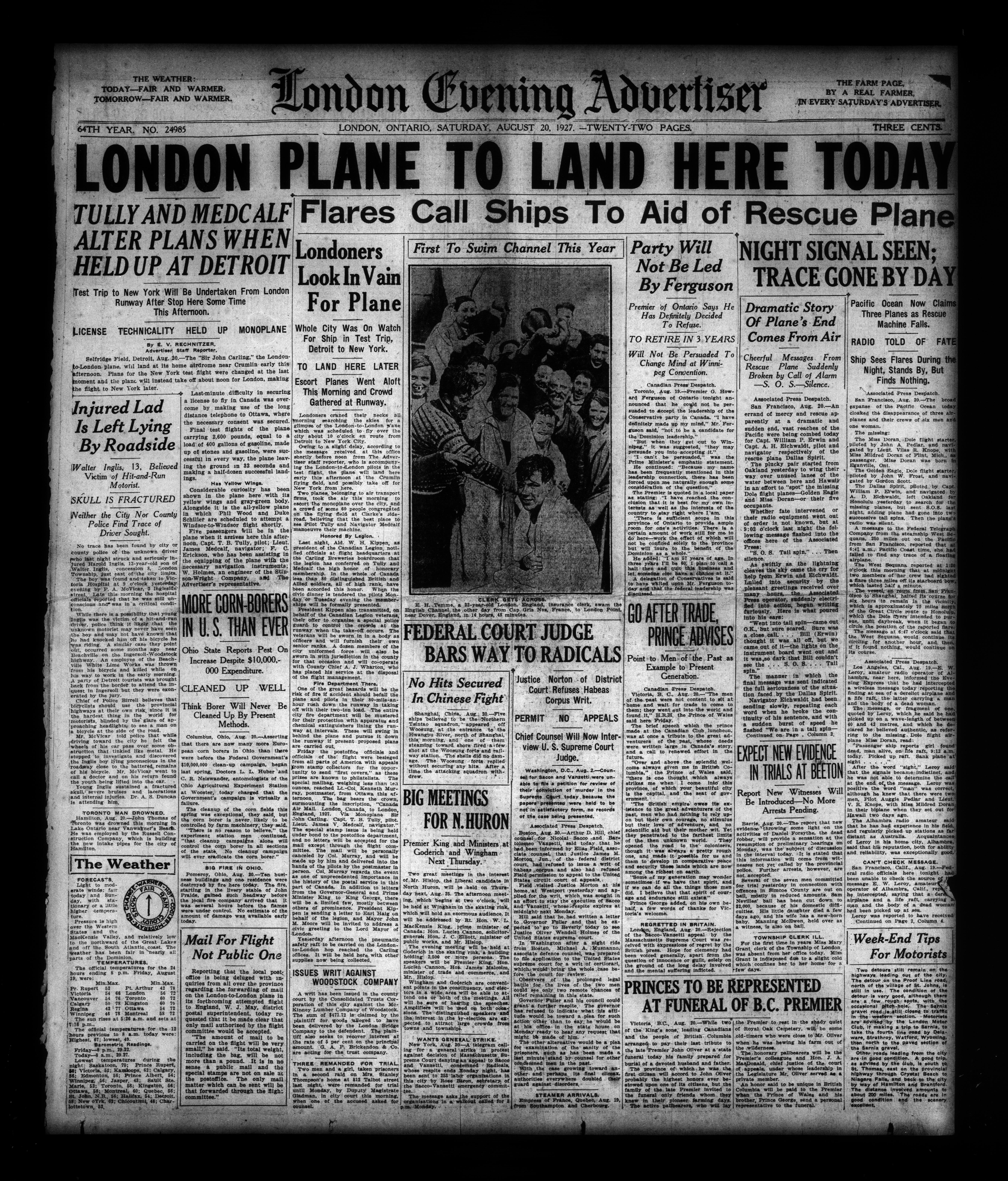 London, Ontario : London Advertiser Company, Limited, [1927]; 22 images, 0 avec recherche en texte intégral