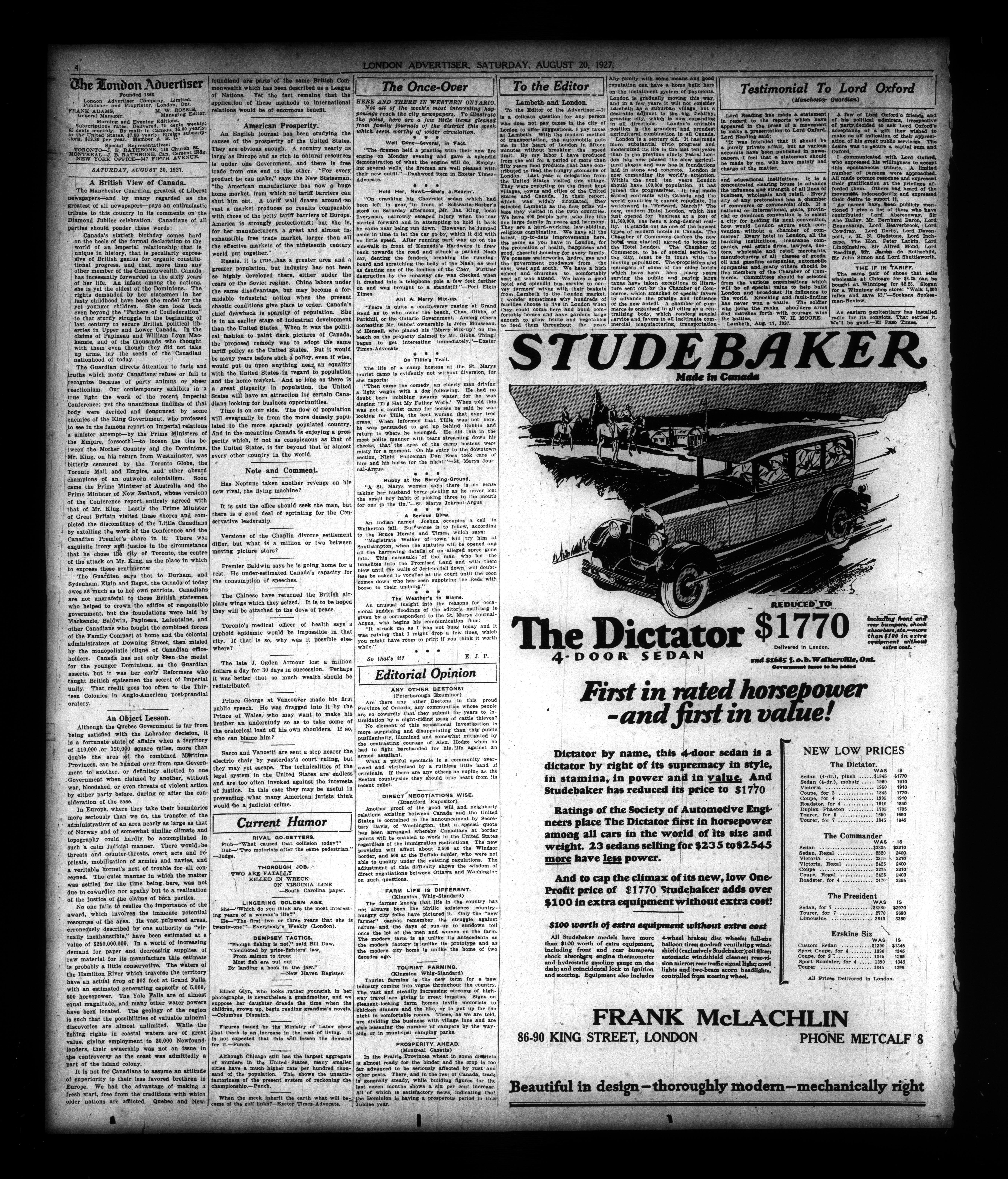 London, Ontario : London Advertiser Company, Limited, [1927]; 22 images, 0 avec recherche en texte intégral