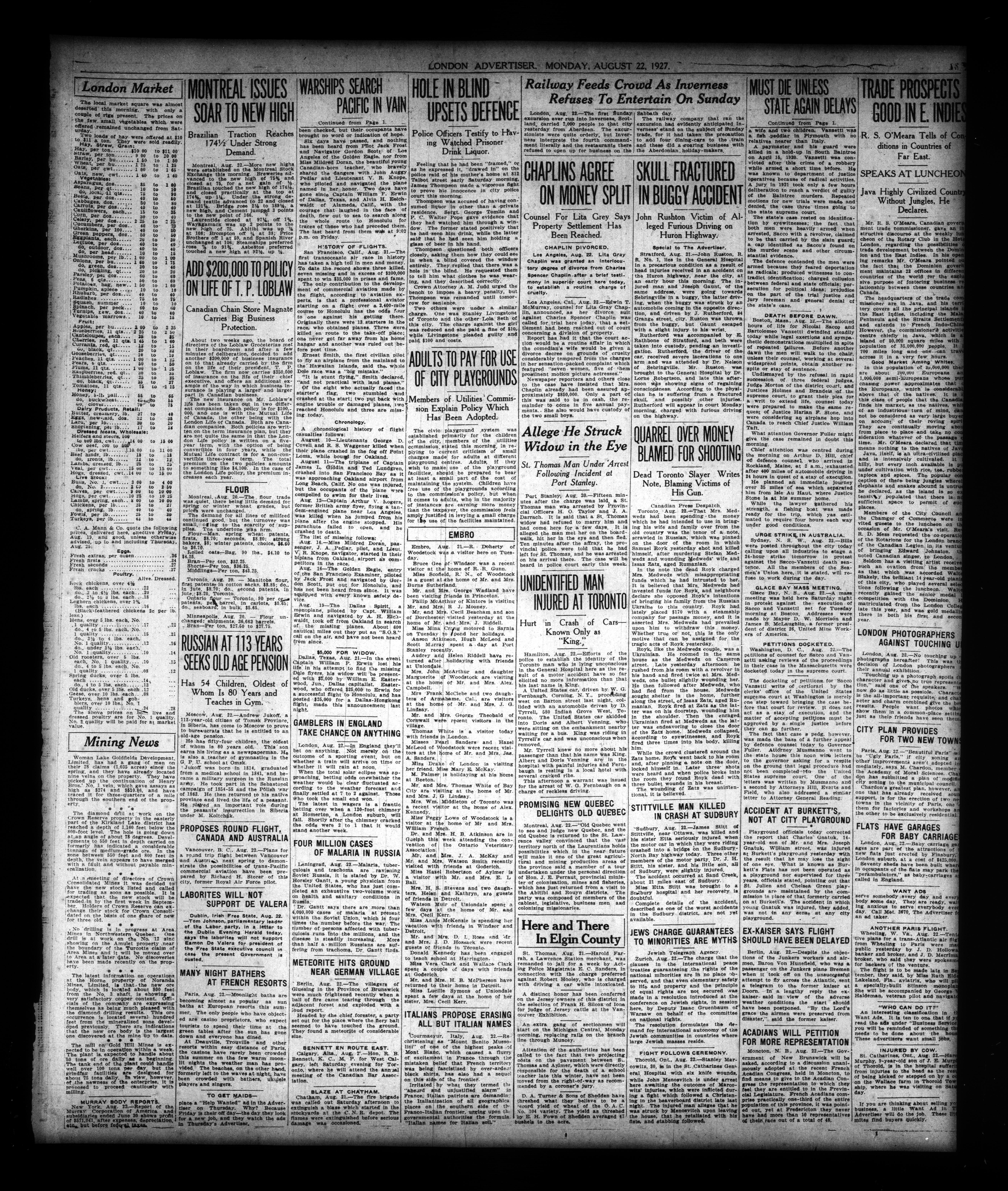 London, Ontario : London Advertiser Company, Limited, [1927]; 14 images, 0 avec recherche en texte intégral