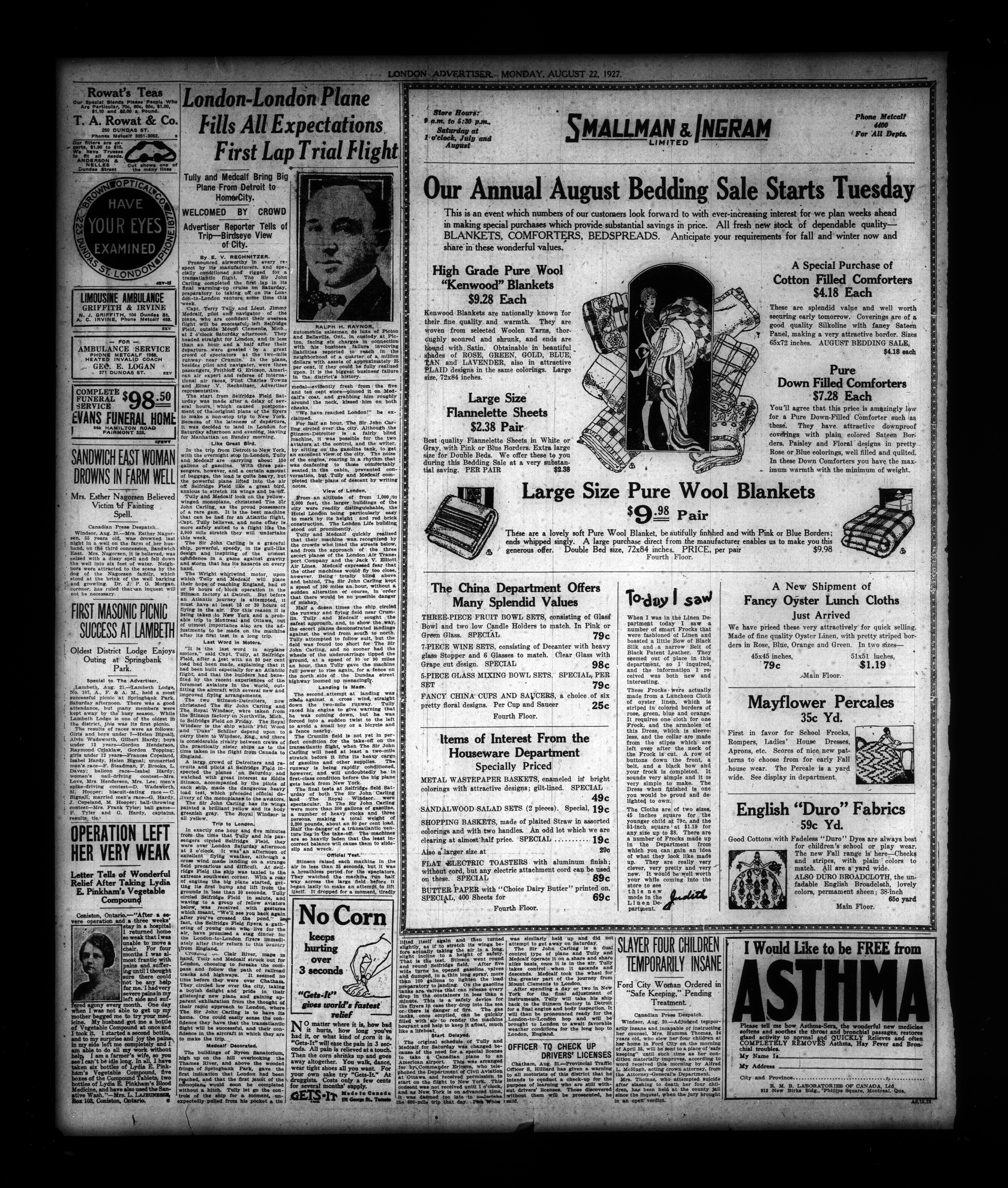 Aide London, Ontario : London Advertiser Company, Limited, [1927]; 14 images, 0 avec recherche en texte intégral