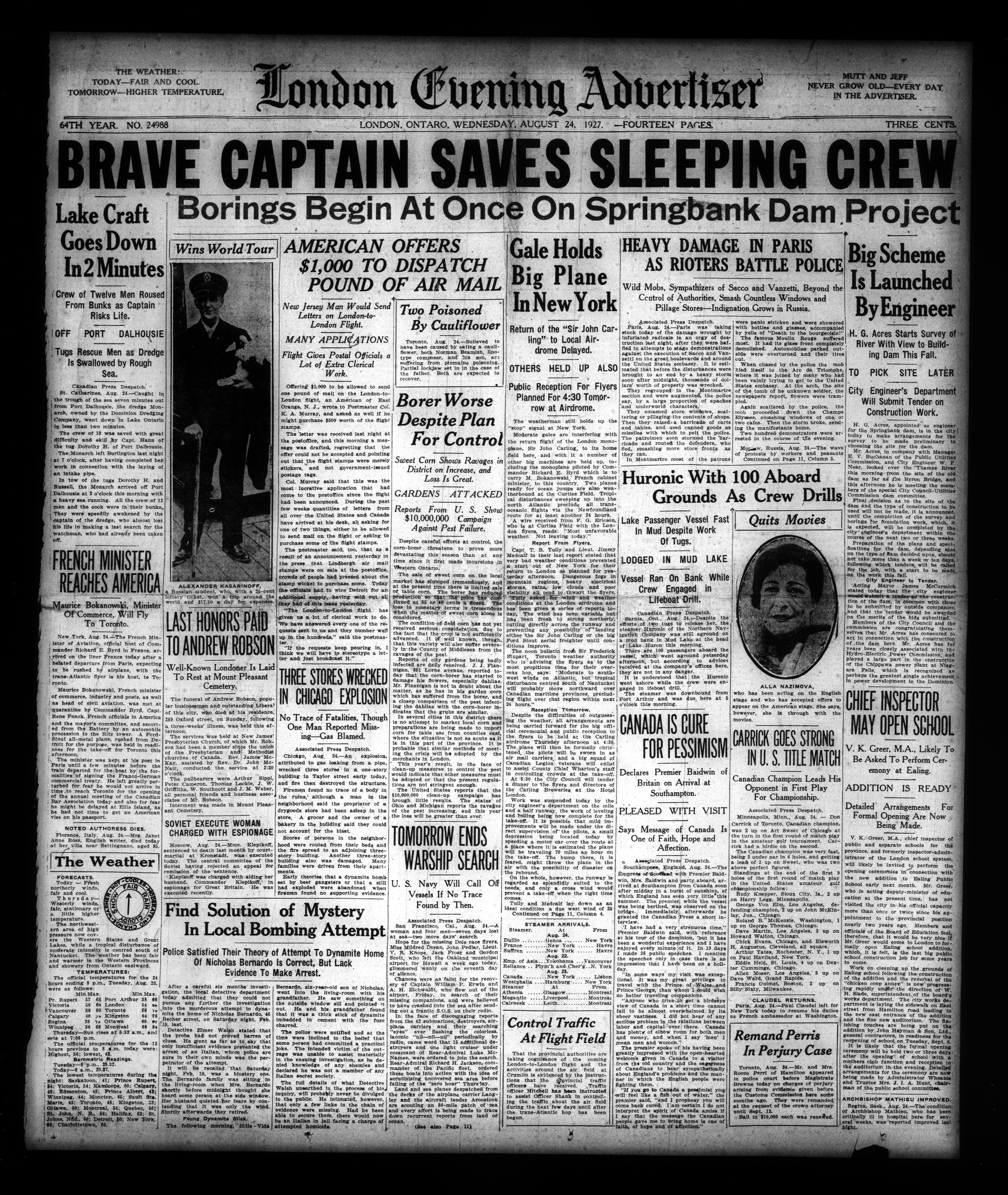 London Evening Advertiser. : London evening advertiser : 64th Year, No. 24988 (August 24, 1927)