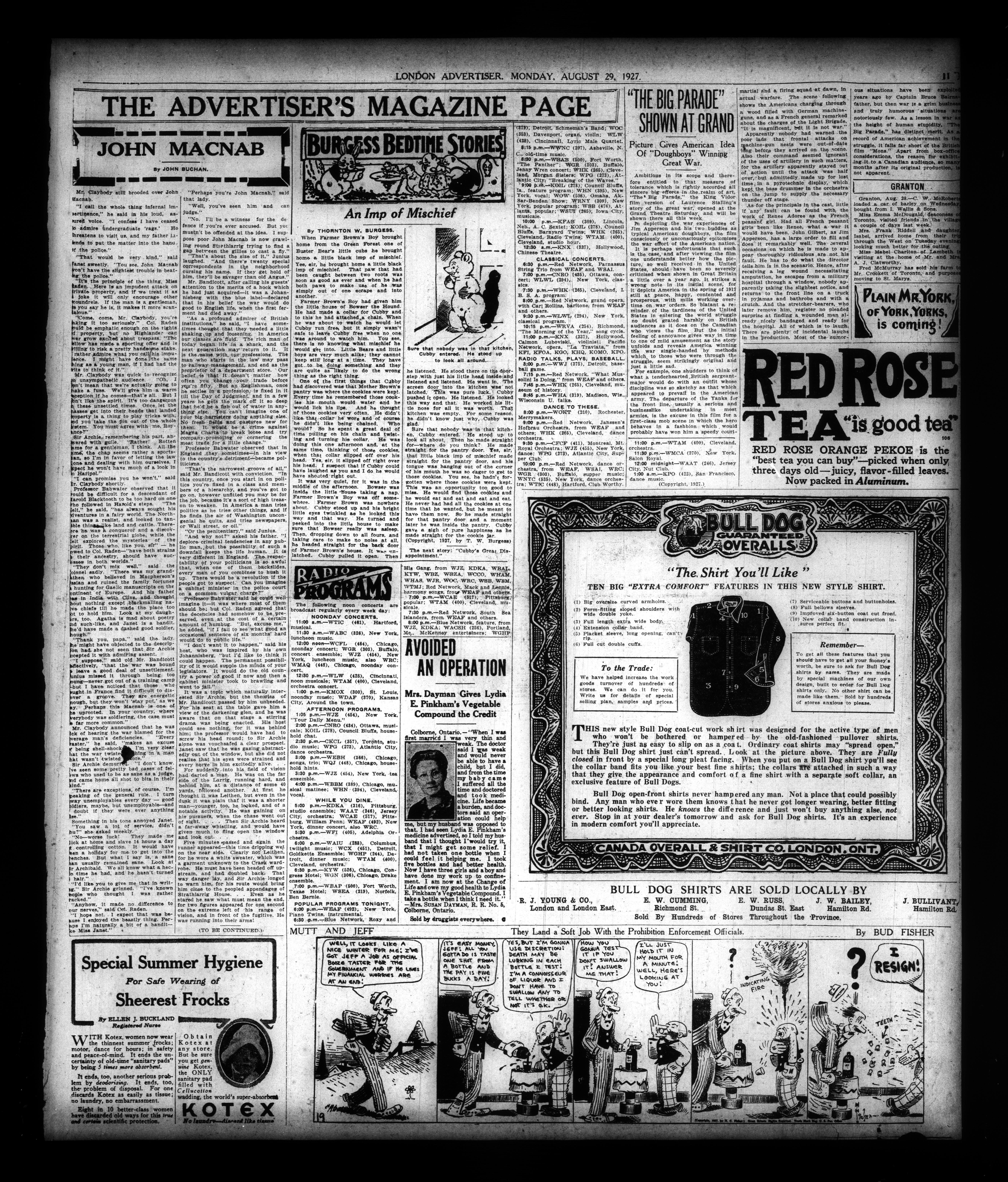 London, Ontario : London Advertiser Company, Limited, [1927]; 14 images, 0 avec recherche en texte intégral