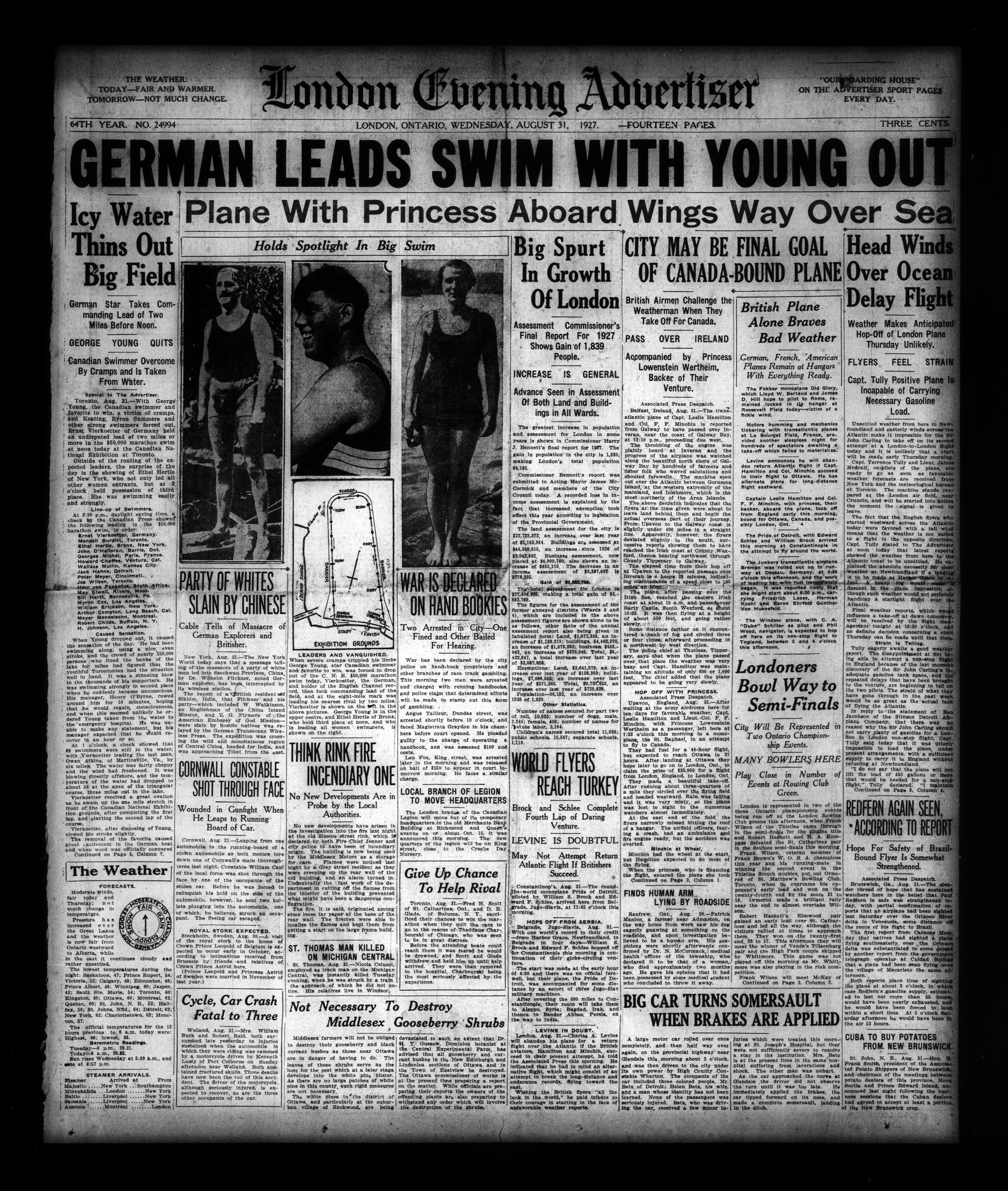 London, Ontario : London Advertiser Company, Limited, [1927]; 14 images, 0 avec recherche en texte intégral