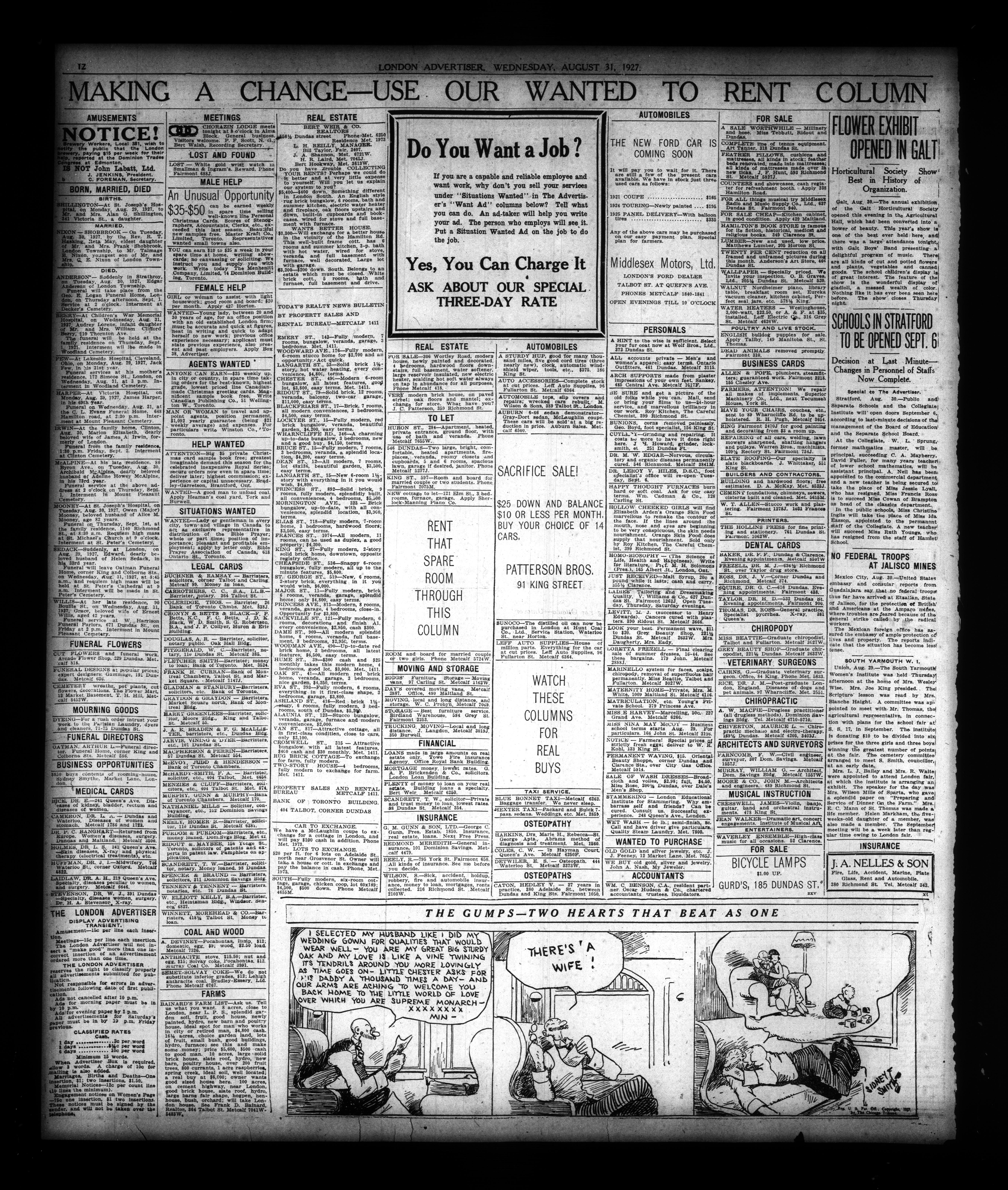 London, Ontario : London Advertiser Company, Limited, [1927]; 14 images, 0 avec recherche en texte intégral