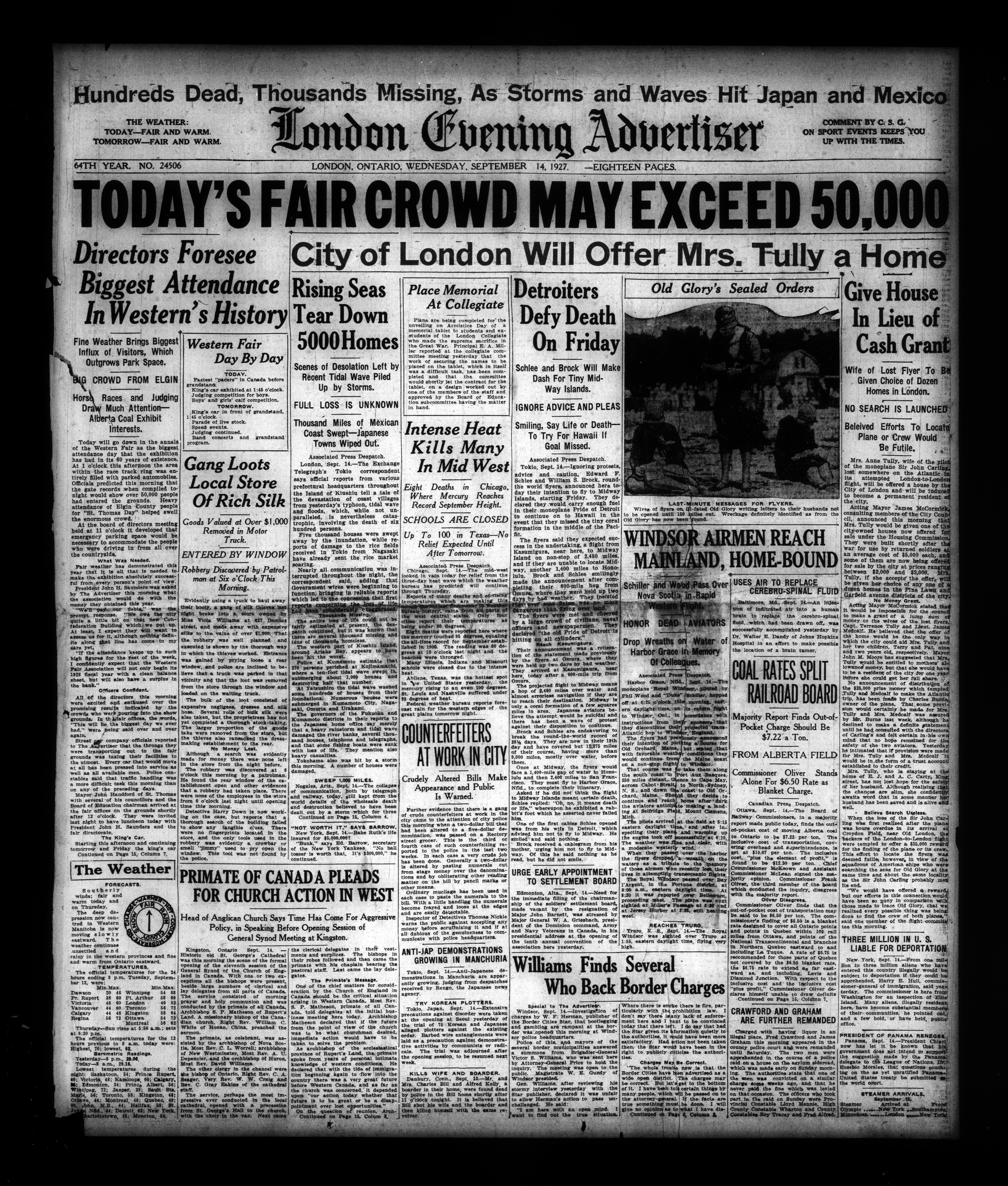 London, Ontario : London Advertiser Company, Limited, [1927]; 18 images, 0 avec recherche en texte intégral