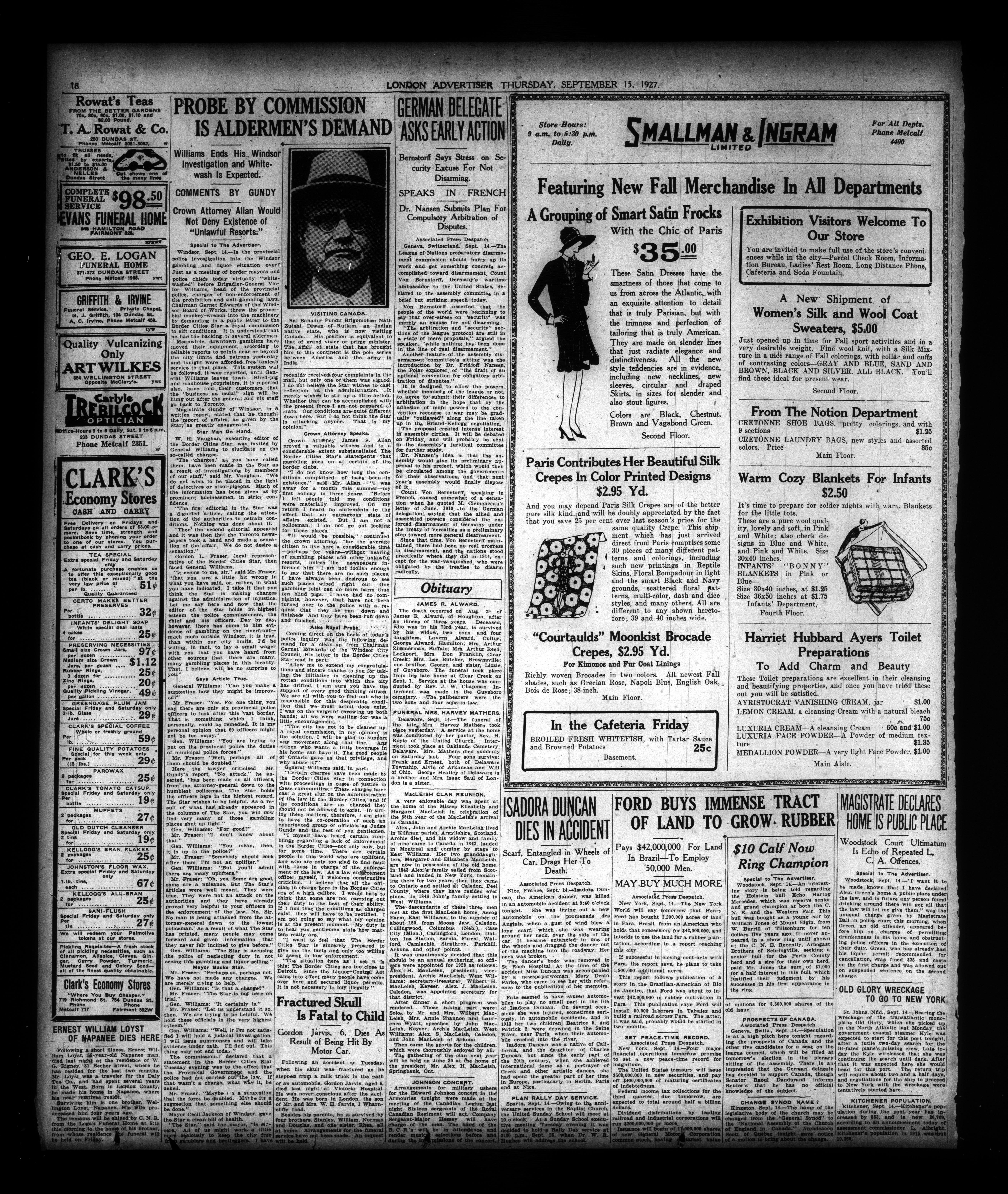 London, Ontario : London Advertiser Company, Limited, [1927]; 18 images, 0 avec recherche en texte intégral
