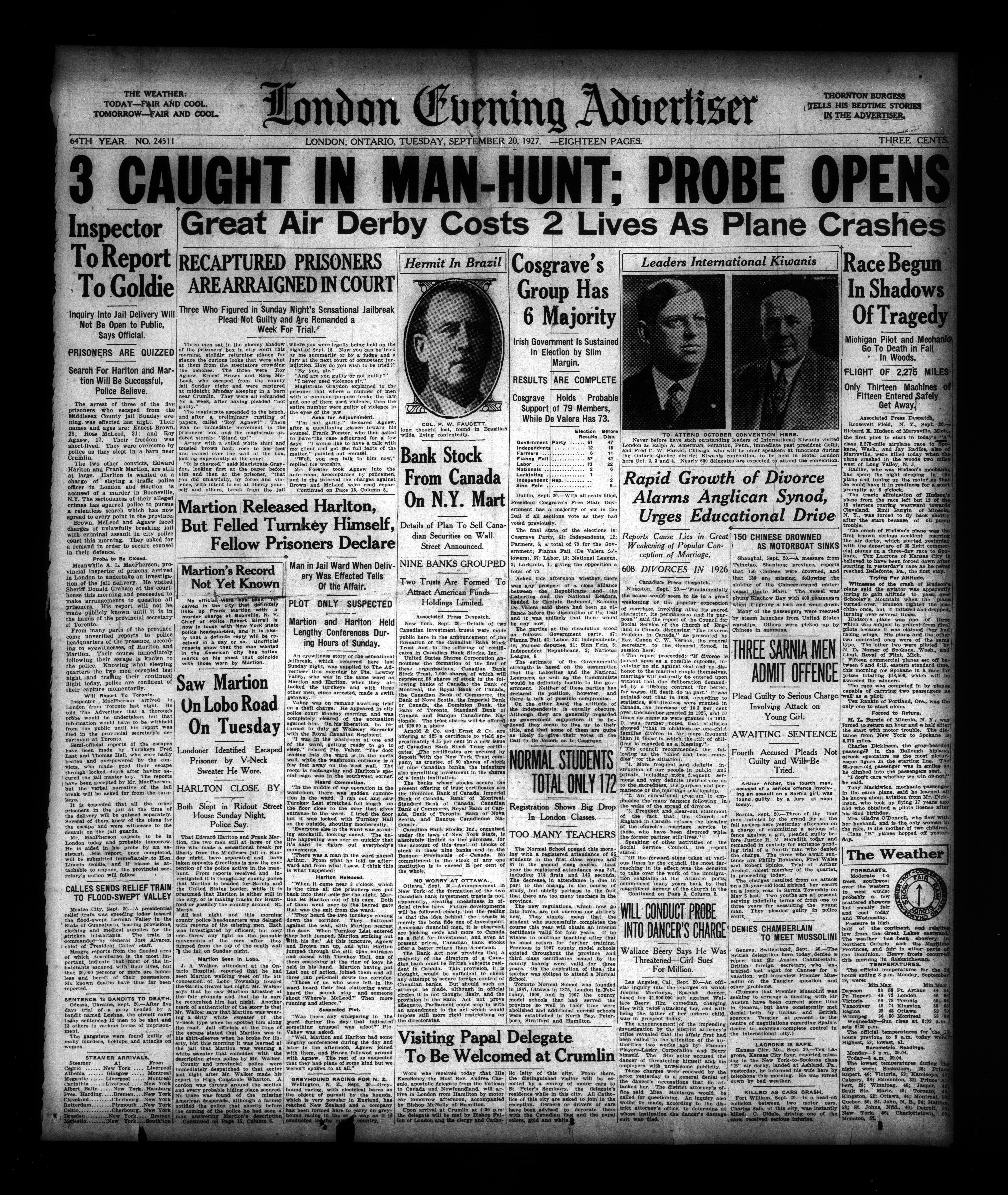 London, Ontario : London Advertiser Company, Limited, [1927]; 18 images, 0 avec recherche en texte intégral