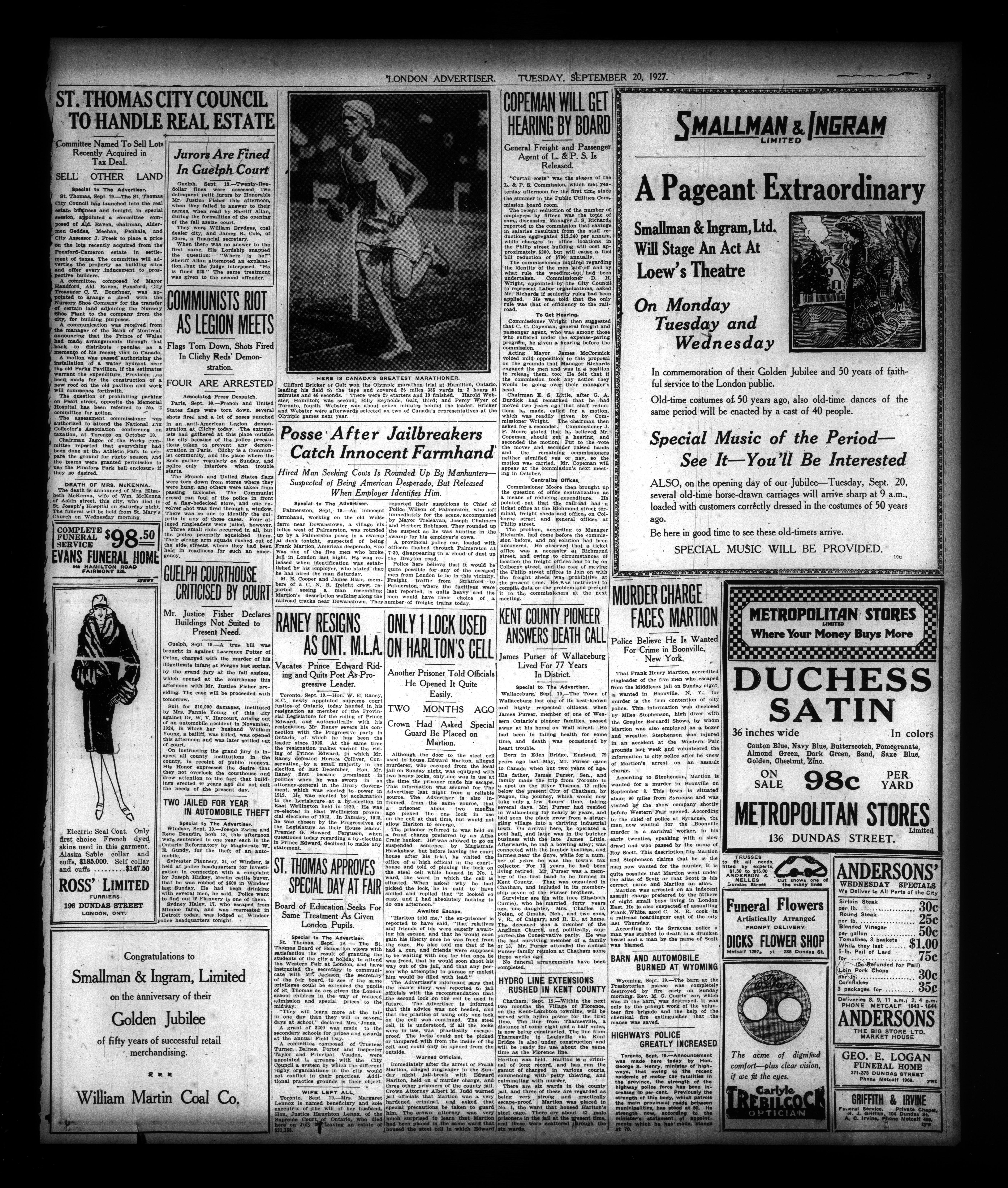 London, Ontario : London Advertiser Company, Limited, [1927]; 18 images, 0 avec recherche en texte intégral