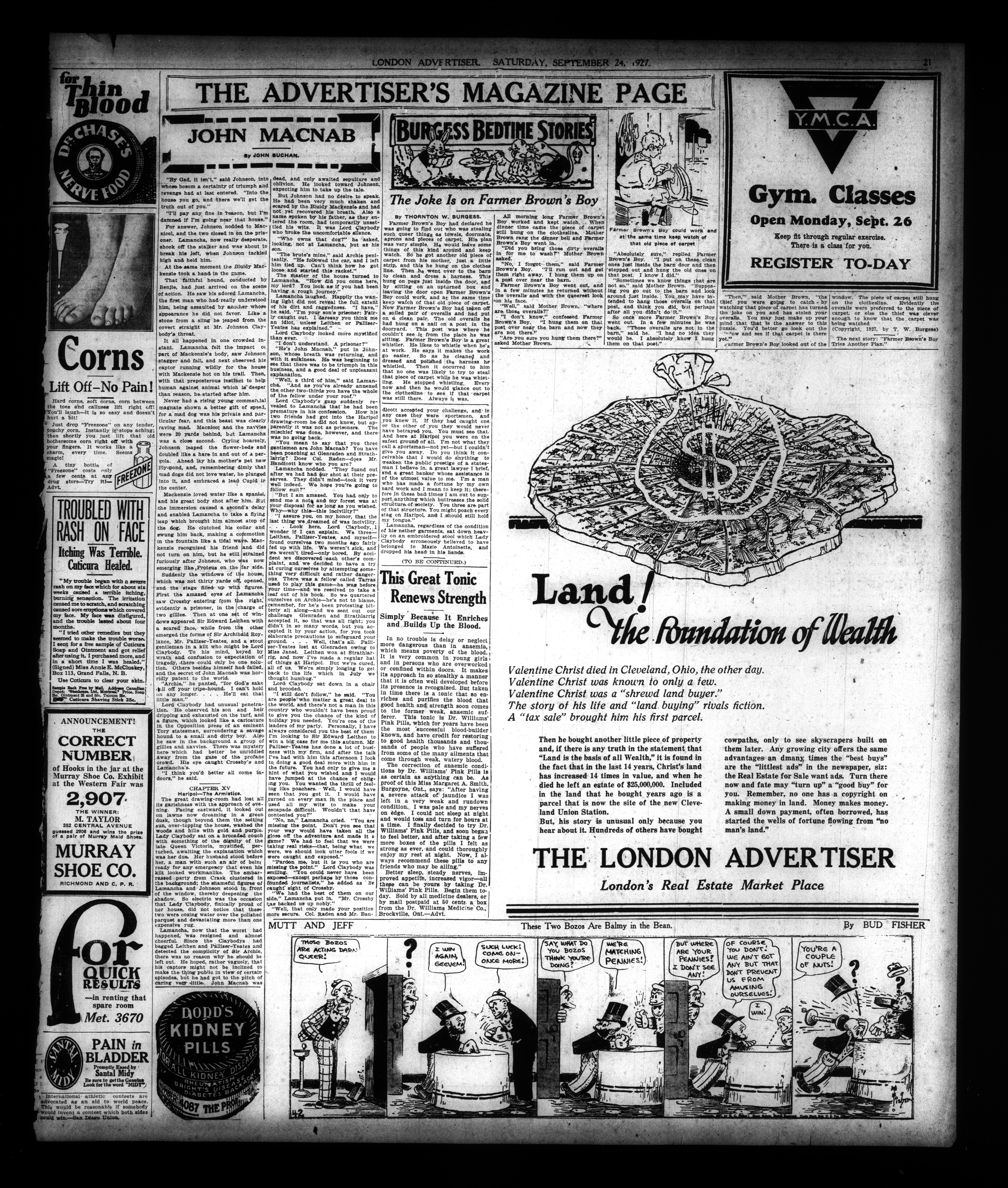 Aide London, Ontario : London Advertiser Company, Limited, [1927]; 20 images, 0 avec recherche en texte intégral